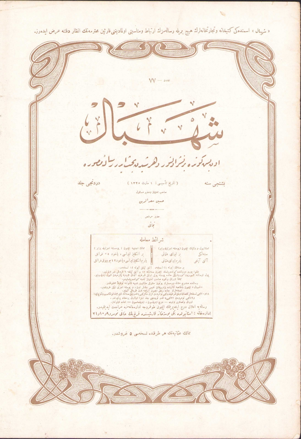 Osmanlı Şehbal Mecmuası, Agop Matosyan Matbaası, Dersaadet, 1329, Mehmed Şevket Paşa kapaklı, Maison Baker reklamlı, resimli, 28x40 cm