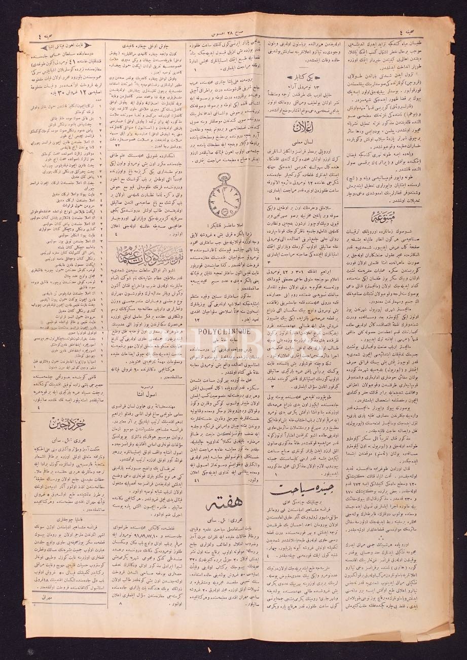 Osmanlıca Sabah gazetesinin 370. sayısı, 28 Ağustos 1306, 38x55 cm