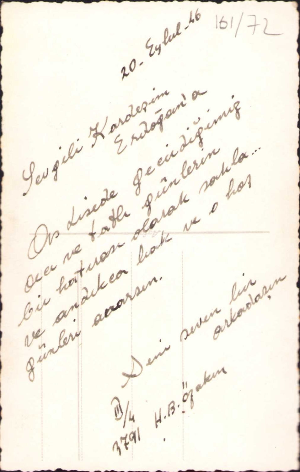 1946 tarihli ve ithaflı şahıs hatıra fotoğrafı