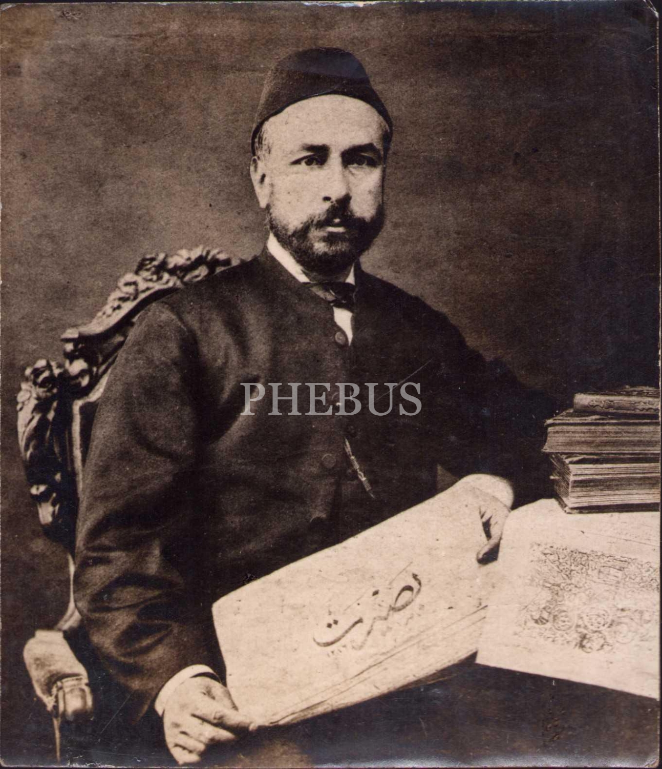 Osmanlıca Basiret gazetesiyle poz veren beyefendi, 11x13 cm