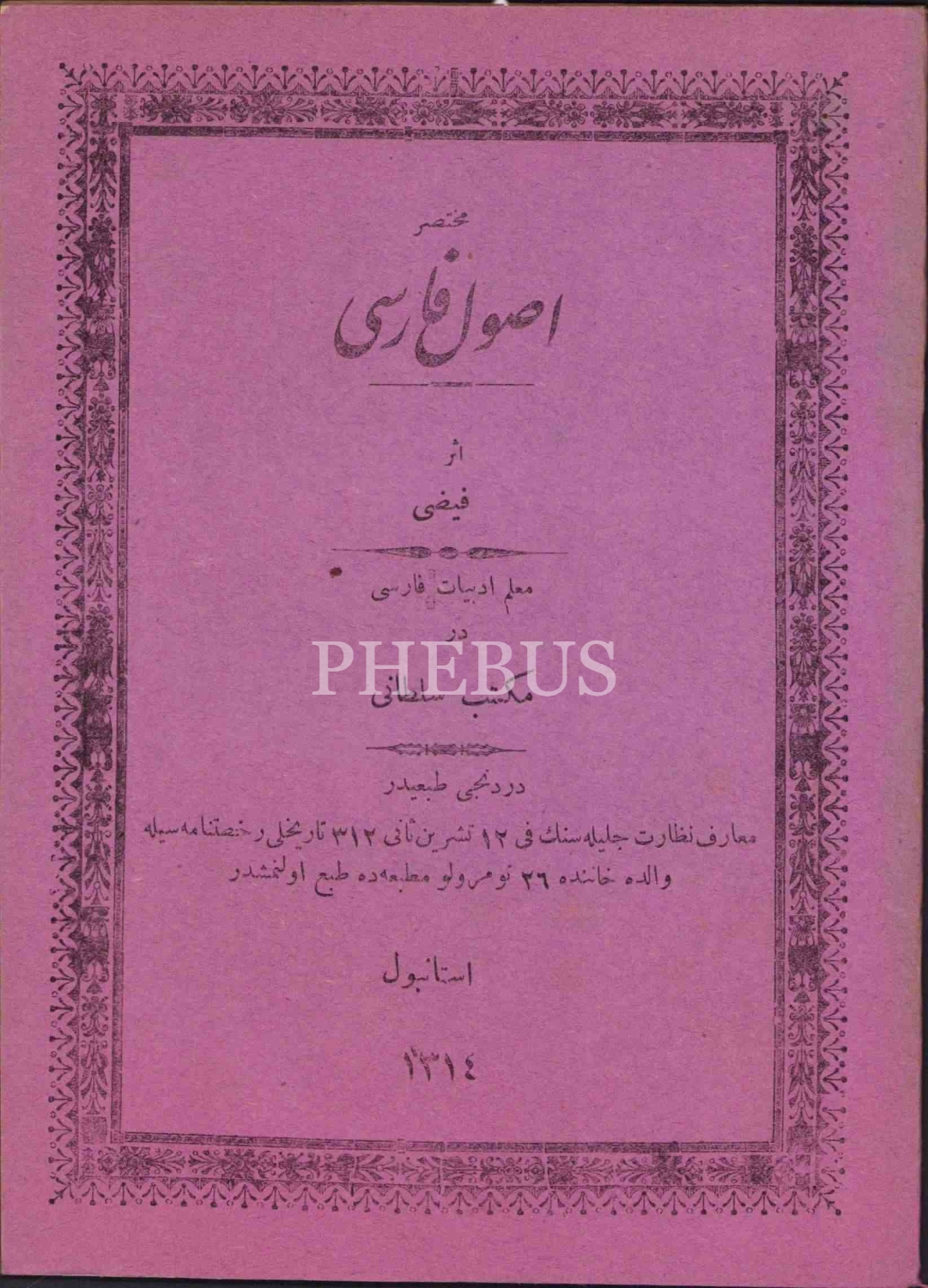 Osmanlıca MUHTASAR USUL-İ FARSÎ, Feyzi, Mehdi Efendi Matbaası, İstanbul 1314, 46 s., 14x19 cm