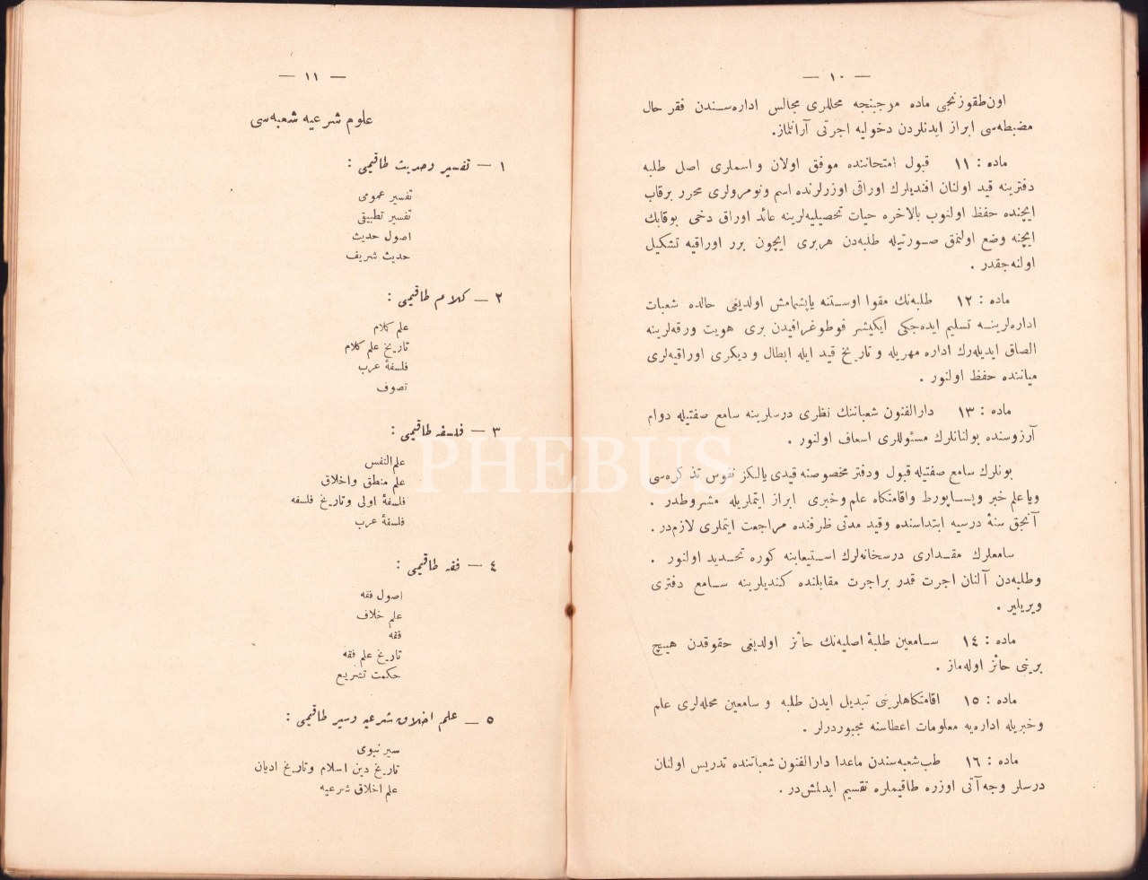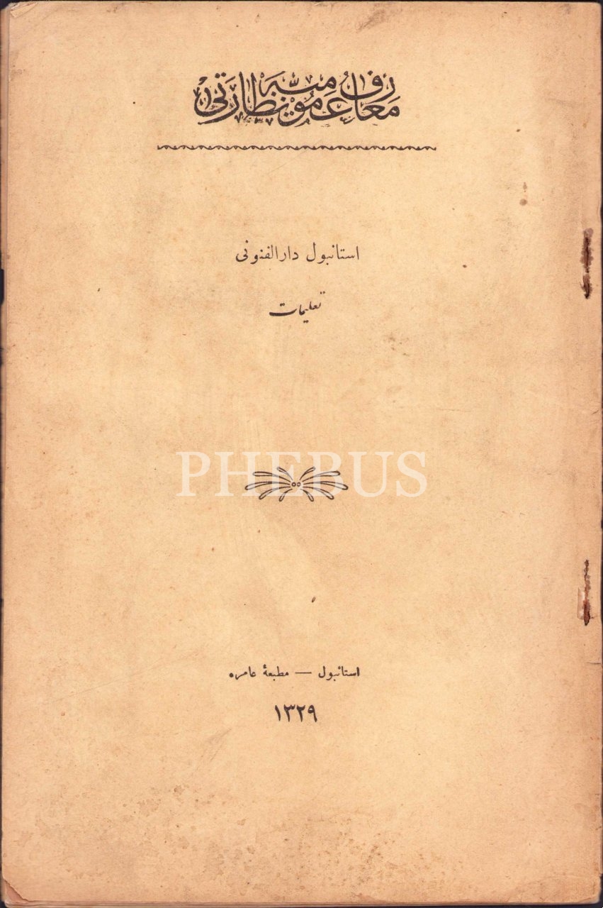 Osmanlıca İstanbul Darülfünunu TALİMAT, Amire Matbaası, İstanbul 1329, 28 s., 15x23 cm