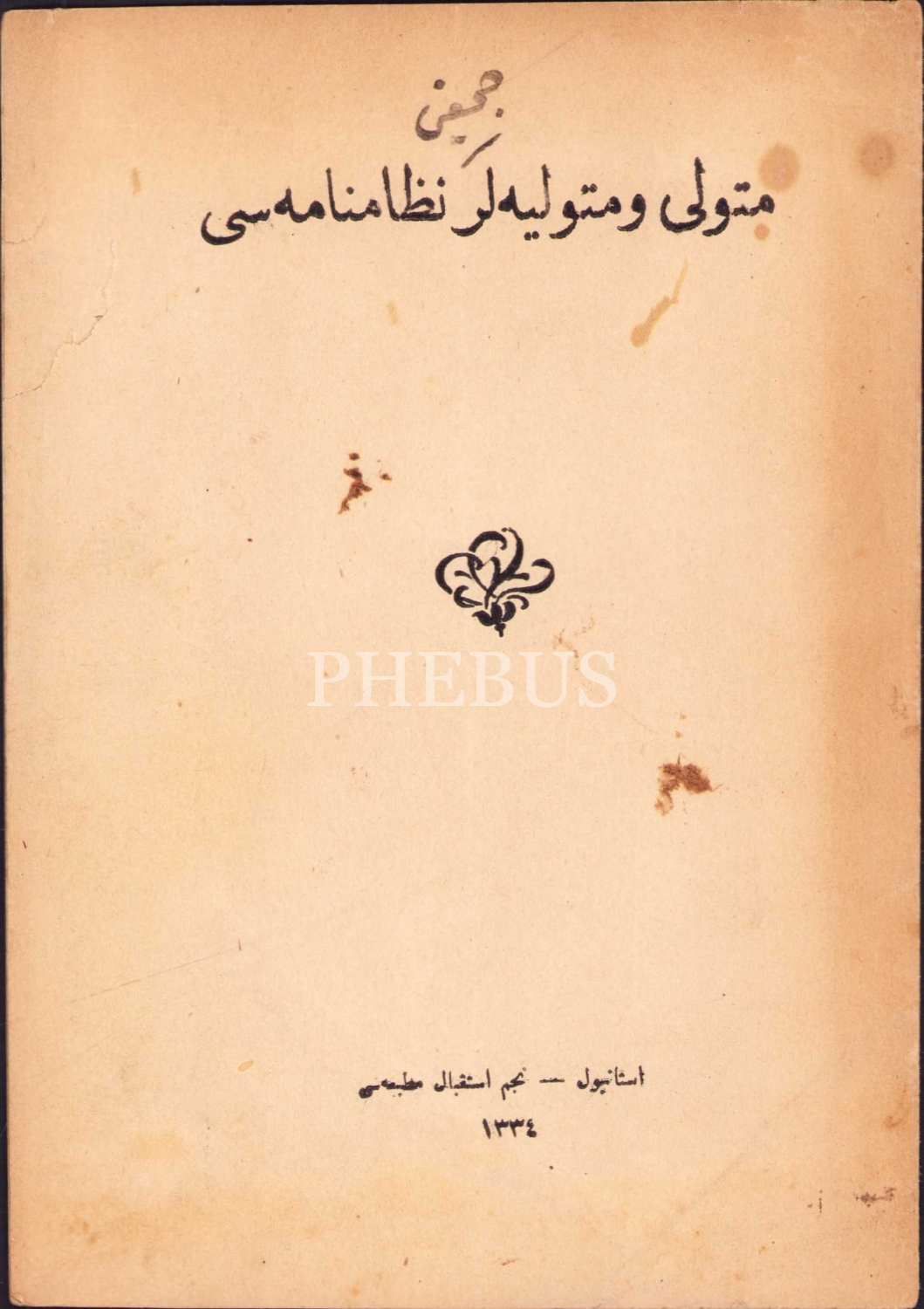 Osmanlıca Mütevelli ve Mütevelliler Nizamnamesi, Necm-i İstikbal Matbaası, İstanbul 1334, 4 s., 14x20 cm, kapak sayfası hafif yırtık haliyle