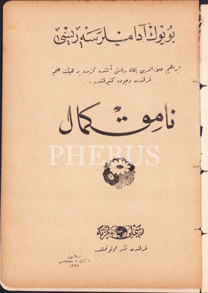 Osmanlıca Büyük Adamlar Serisi'nden NAMIK KEMAL, Resimi Gazete Yayınları, İstanbul 1927, 12 s., 13x19 cm, kapak sayfasından ayrık haliyle
