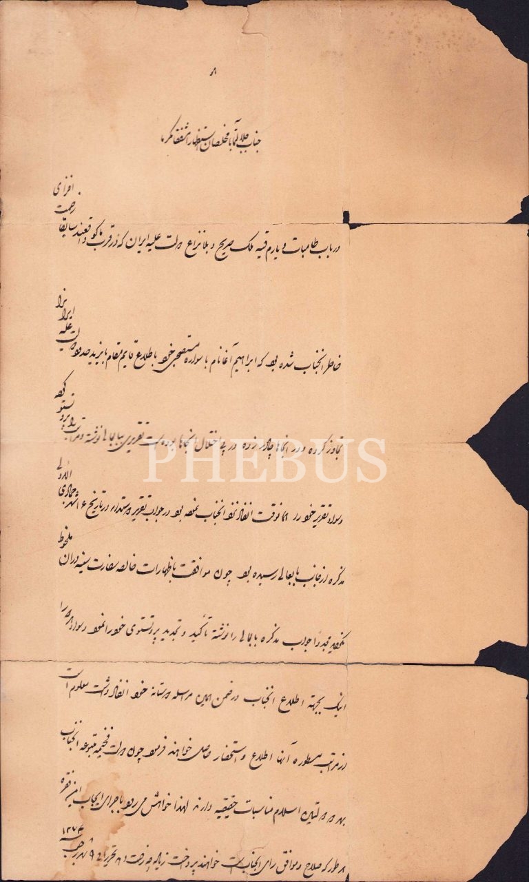 1274 tarihli Farsça evrak, 19x31 cm, kısmen parçalanmış haliyle