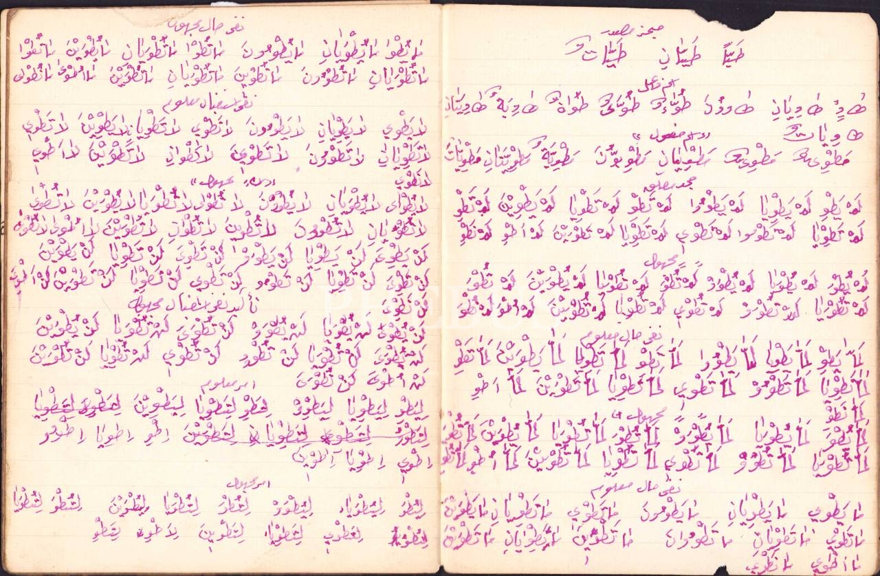 Arapça sarf çalışma defteri, 16x20 cm, bazı sayfaların kenarları yırtılmış haliyle