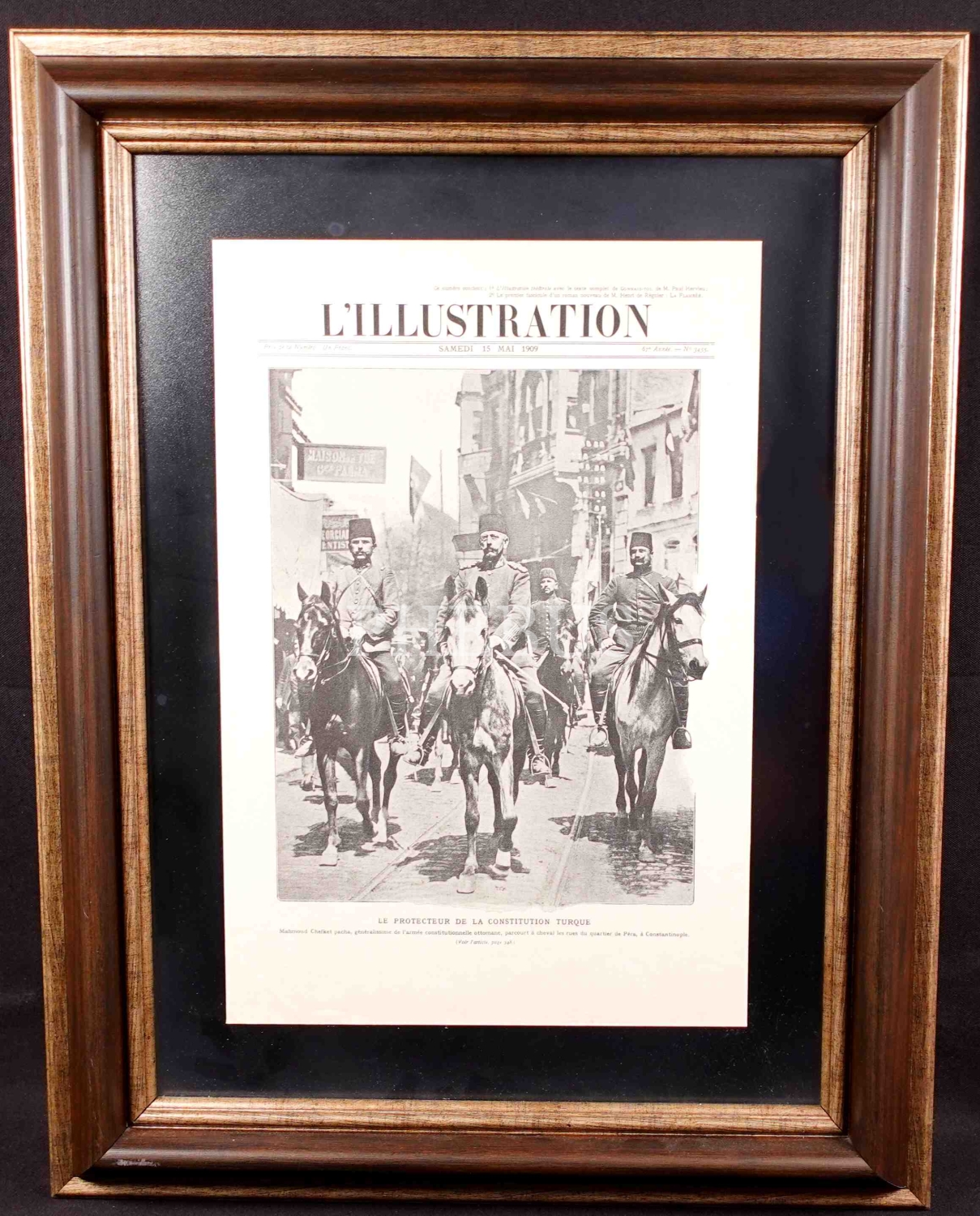 Fransızca L'Illustration dergisi 3455. sayısının Mahmud Şevket Paşa ve Hareket Ordusu görselli kapağı, 15 Mayıs 1909, çerçeve: 47x62 cm