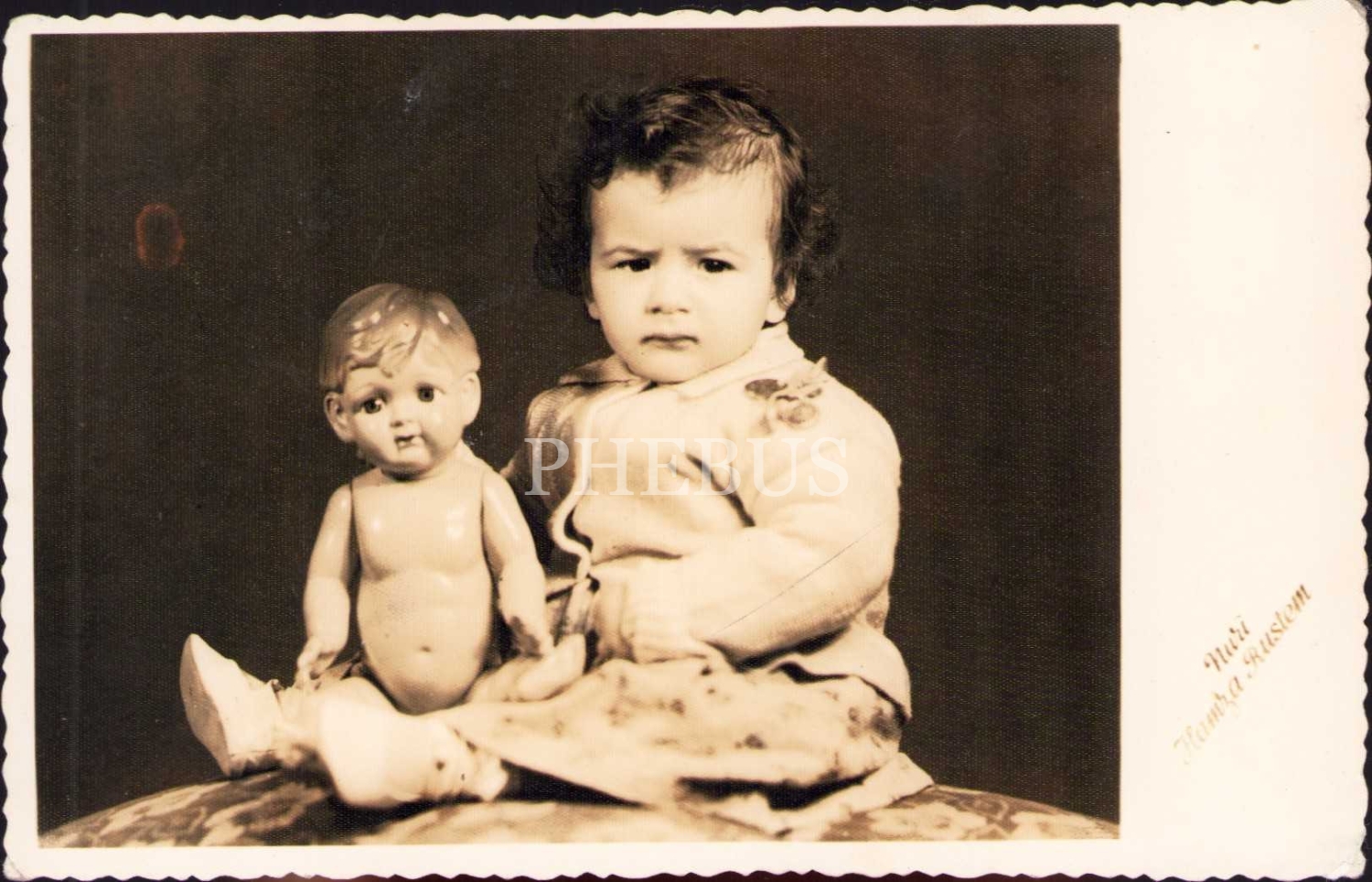 Oyuncaklı kız çocuğunun 1954 tarihli hatıra fotoğrafı, Foto Nuri Hamza Rüstem