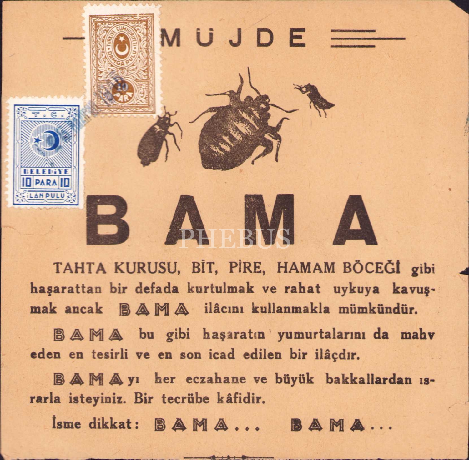 Bama böcek ilacına ait el ilanı, 14x14 cm