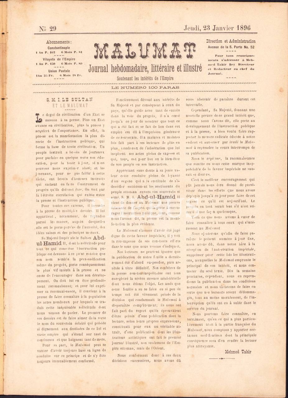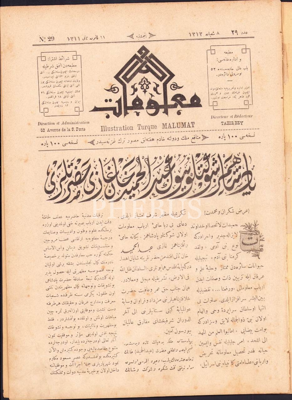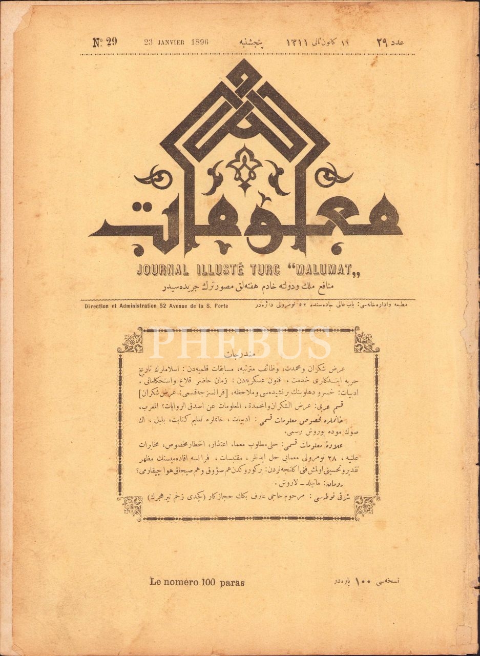 Osmanlıca Malumat dergisinin 29 sayısı, 23 Ocak 1896, 24x33 cm