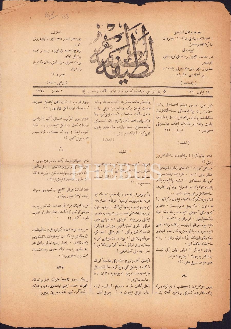 Osmanlıca eğlence gazetesi Latife'nin 12. sayısı, 19 Eylül 1290, 26x26 cm