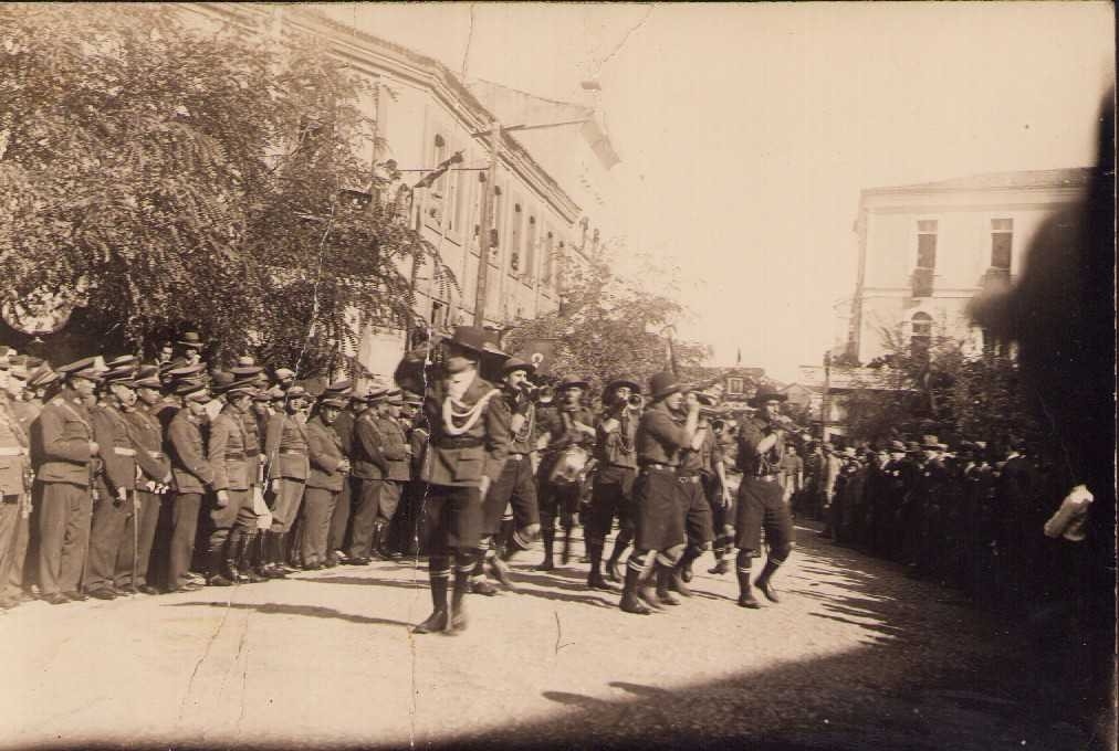 Trabzon Cumhuriyet Bayramı Kutlamaları, 1931, izciler geçitte, haliyle, 9x14cm