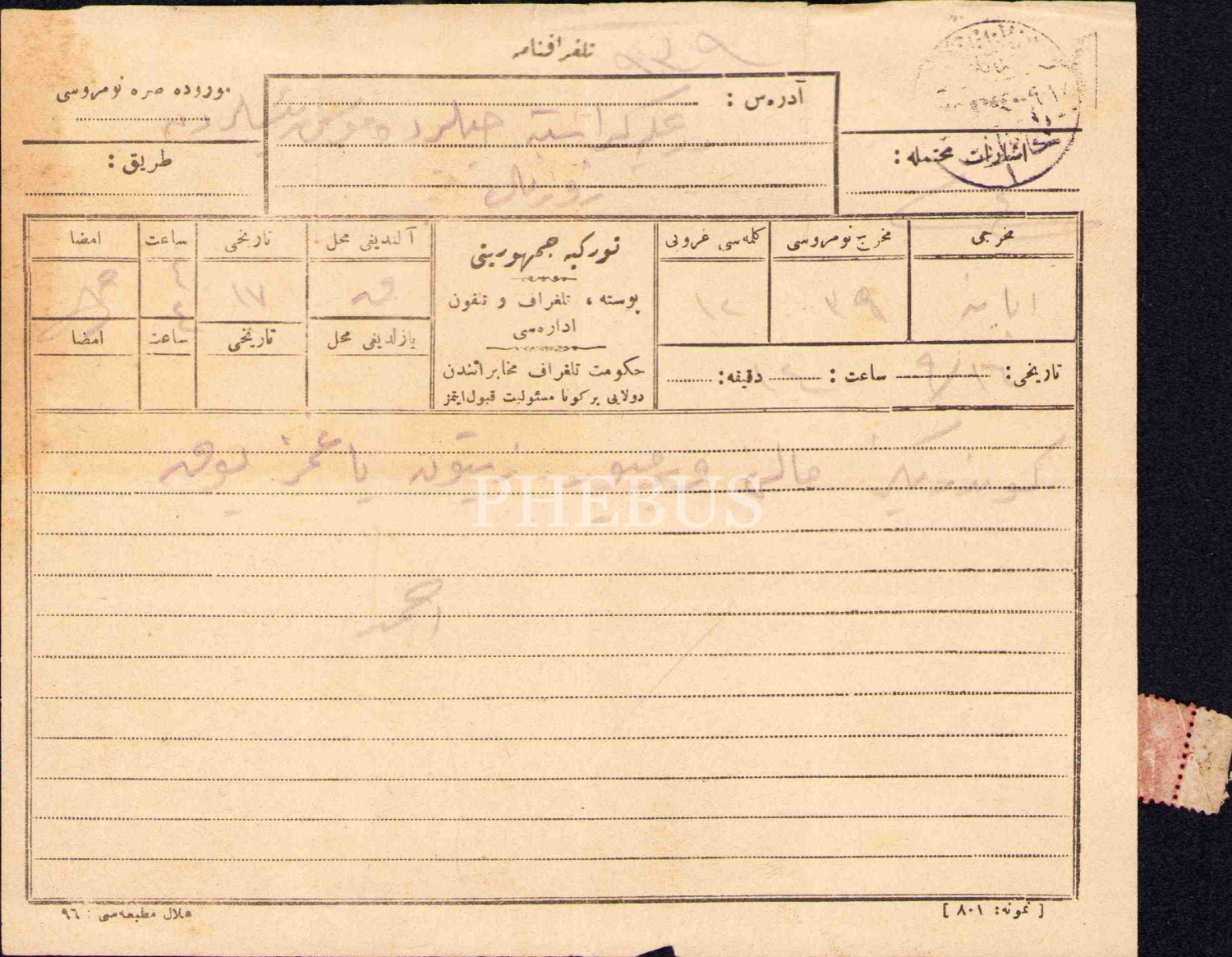 Osmanlıca "… malı vermiyor zeytinyağımız yok" yazılı telgraf, 16x19 cm