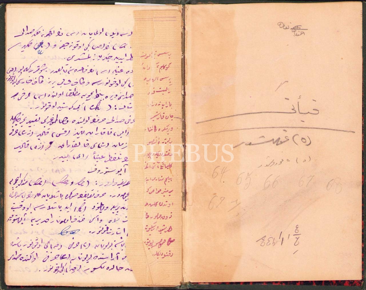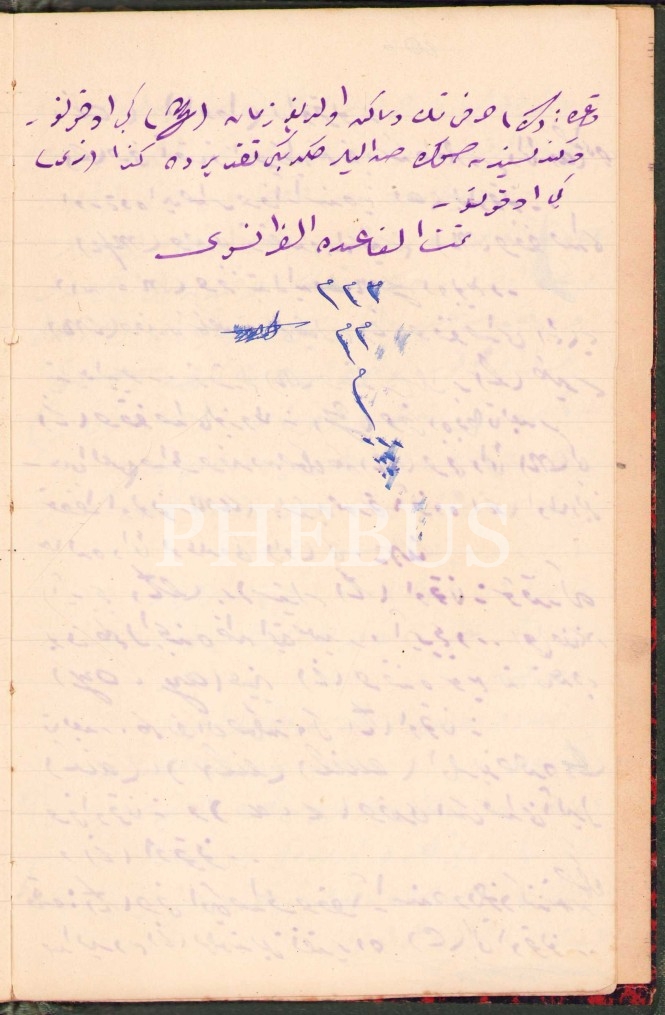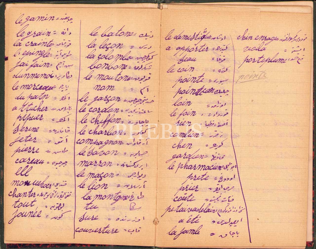 Osmanlı tuğralı ve ay yıldızlı cildinde Osmanlıca-Fransızca ders defteri, 13x21 cm, birkaç sayfası kısmen koparılmış haliyle