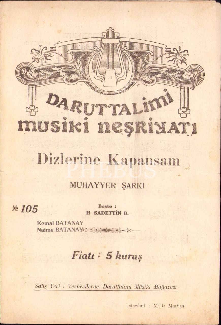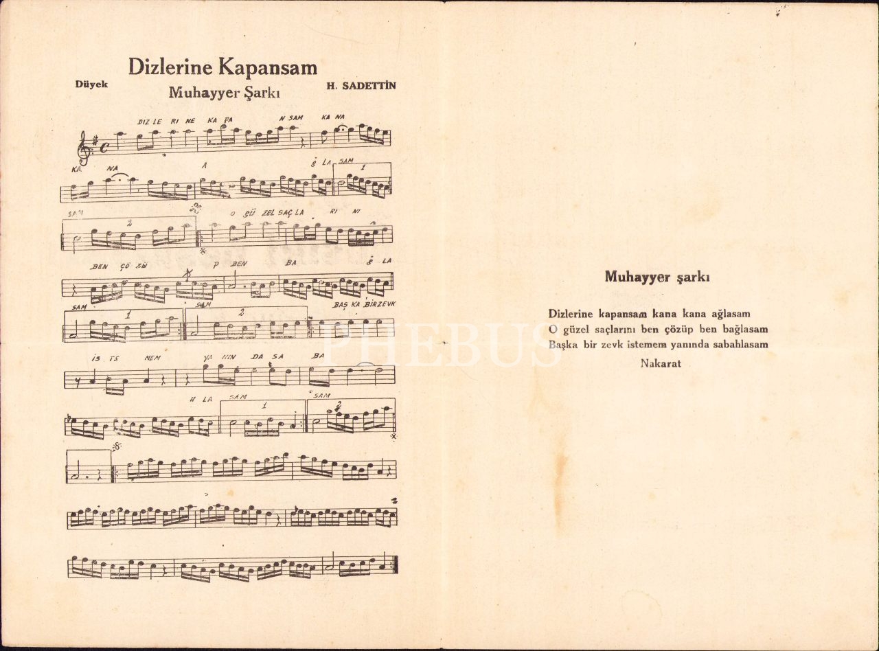 Darüttalimi Musiki Neşriyatı'ndan Muhayyer şarkı notası: Dizlerine Kapansam, İstanbul, 17x25 cm