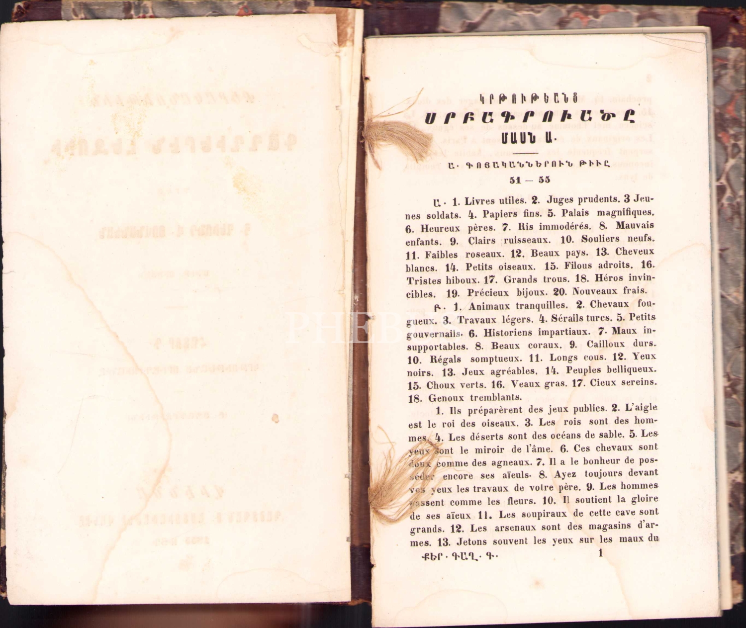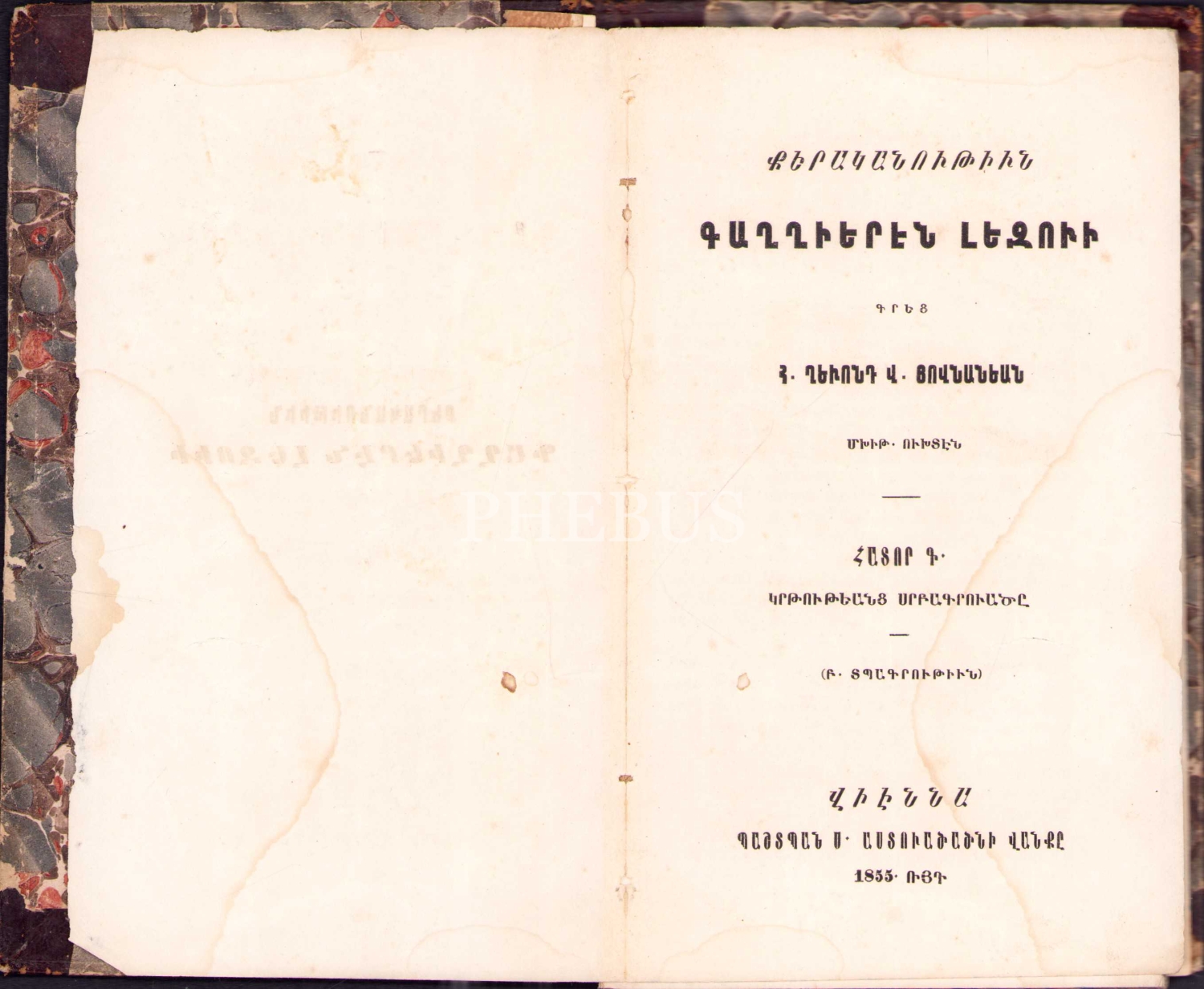 Viyana 1855 baskı Ermenice kitap: Fransızca Lisanının Grameri, Hovnanyan, 3. Cilt- Hovnanyan, Rahip Ğevont, 75 s., 11x18 cm, sırtı ayrık haliyle