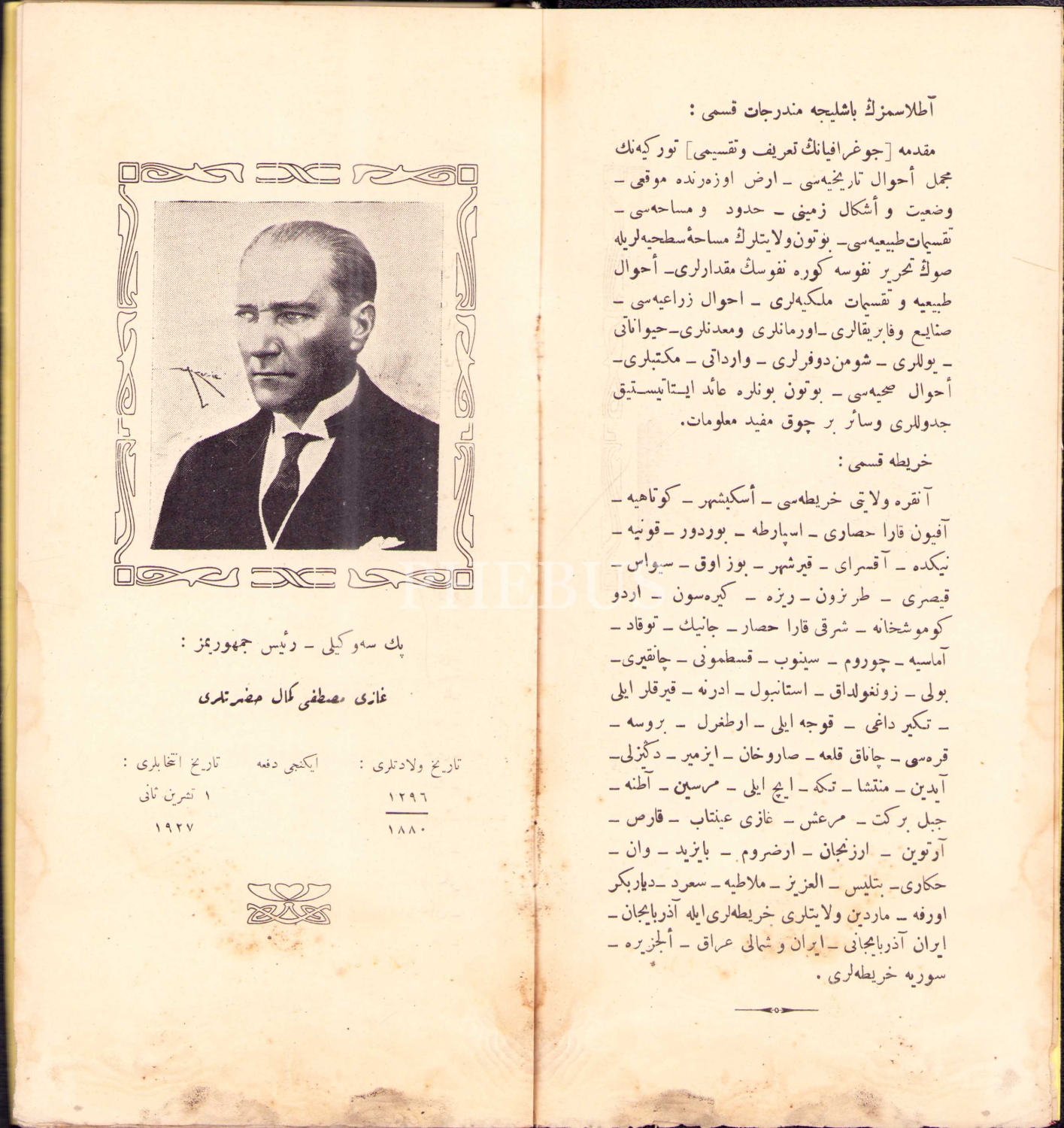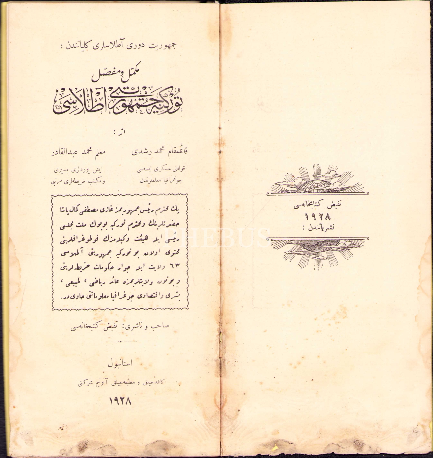 Osmanlıca MÜKEMMEL VE MUFASSAL TÜRKİYE CUMHURİYETİ ATLASI, Mehmed Rüşdi-Mehmed Abdulkadir, Kâğıdcılık ve Matbaacılık A.Ş., İstanbul 1928, 136 s., 12x25 cm