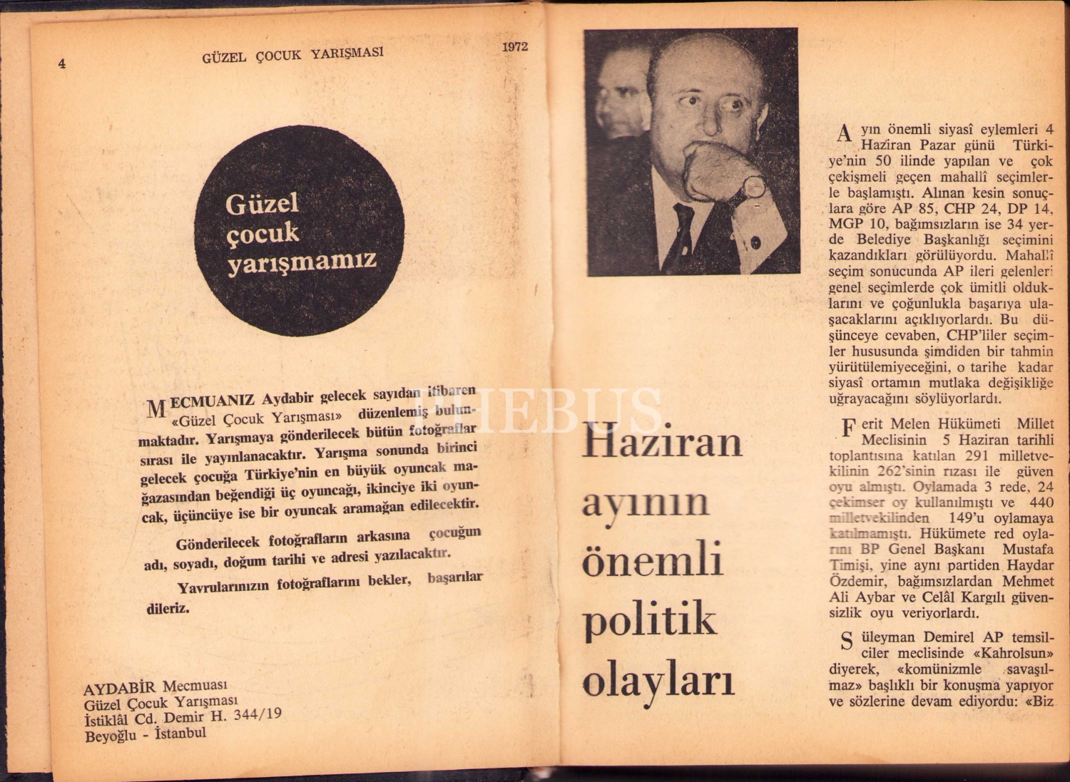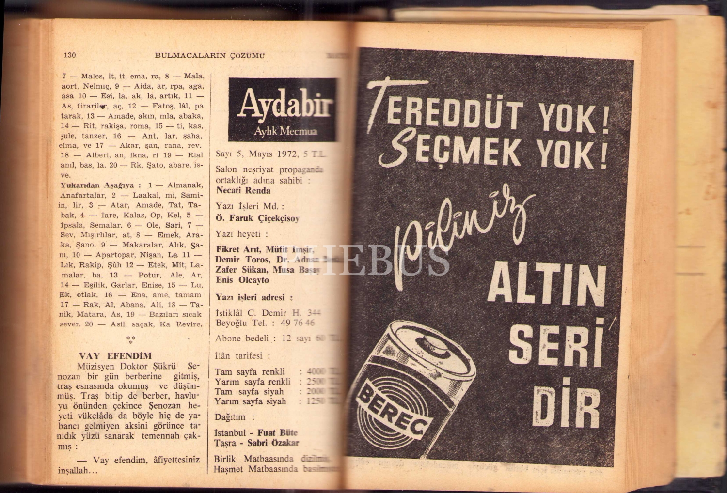 AYDABİR dergisinin 1972 tarihli ilk 12 sayısı [2 cilt], 13x19 cm, birinin sırtı ayrık haliyle