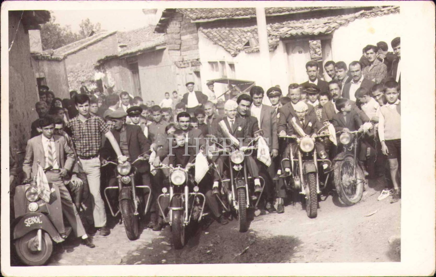 Motosikletli sünnet çocukları ile topluluğun hatıra fotoğrafı
