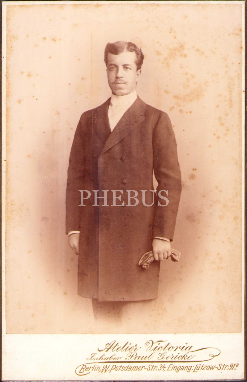 Şık giyimli genç beyefendinin kabin fotoğrafı, Atelier Victoria Fotoğrafhanesi-Berlin, 11x17 cm
