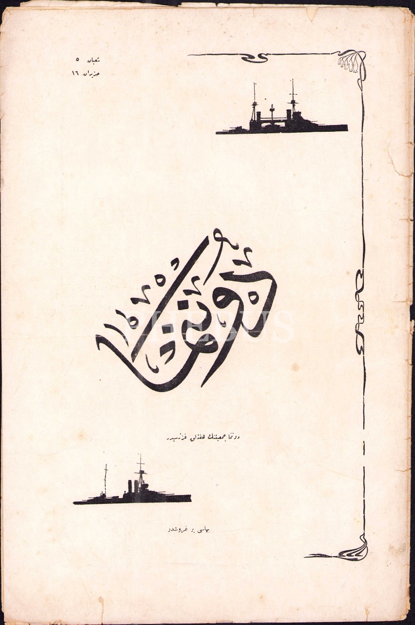 Osmanlıca Donanma dergisinin "İlave Kısmı", 25x38 cm, kapağı yıpranmış haliyle