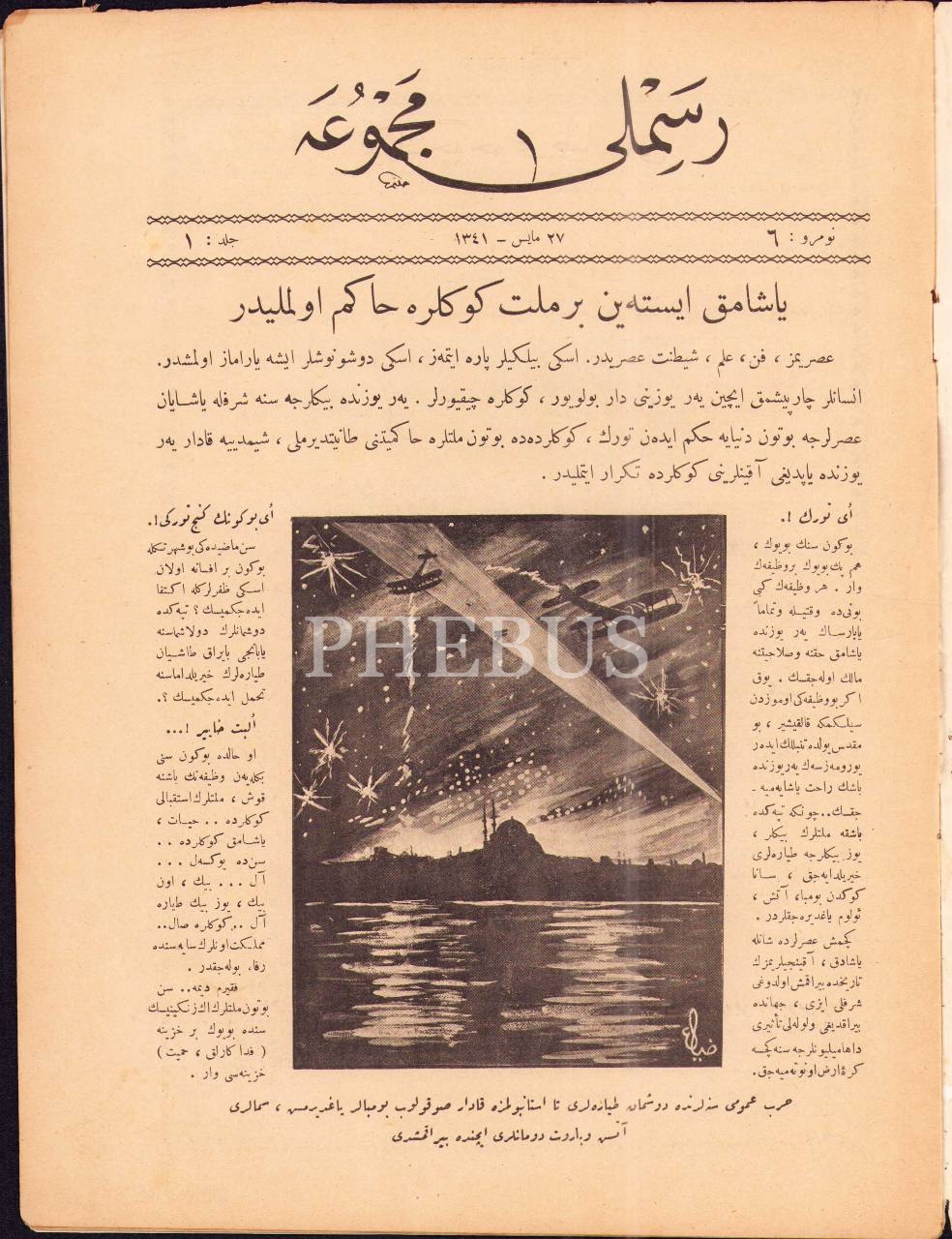 Osmanlıca Resimli Mecmua'nın 6. sayısı, 27 Mayıs 1341, "Zafer, Şan Bundan Sonra Göklerdedir" başlıklı ön kapak görseliyle, 23x30 cm