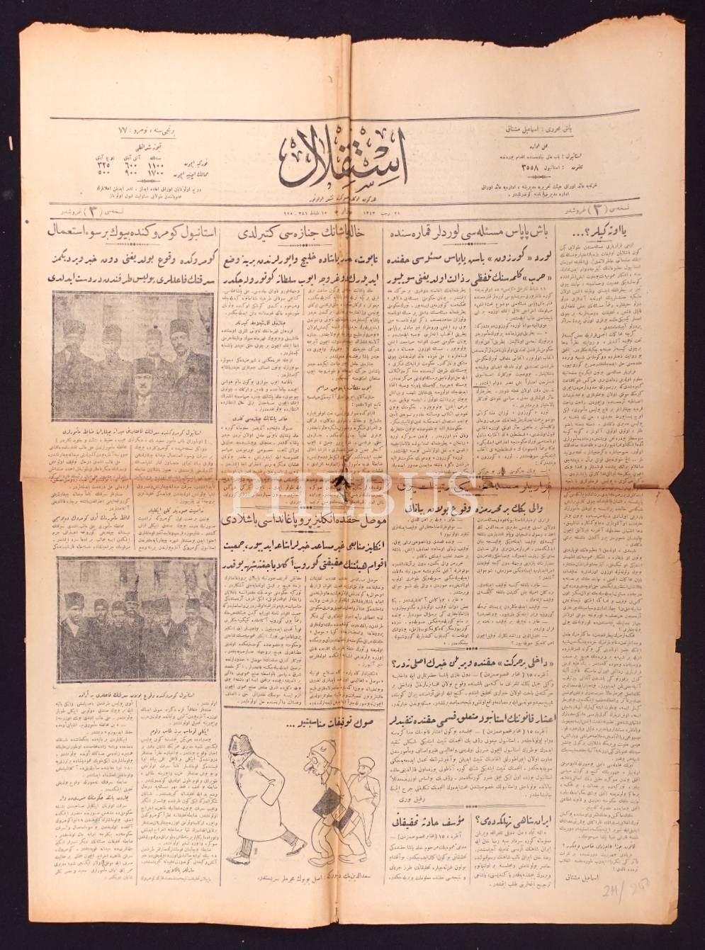 Osmanlıca İstiklâl gazetesinin 77. sayısı, 15 Şubat 1925, 48x64 cm