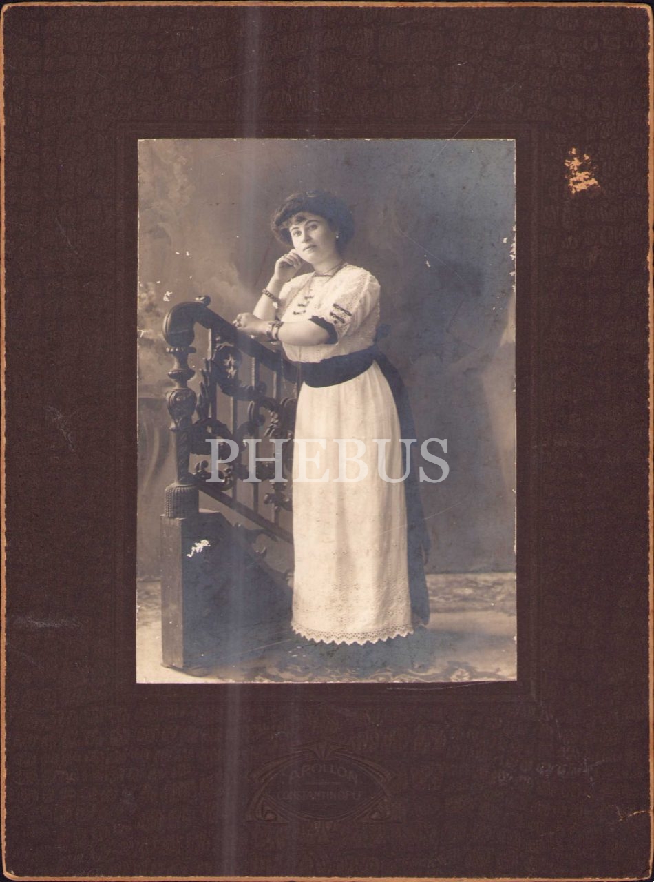 Genç hanımefendinin kabin fotoğrafı, Apollon Fotoğrafhanesi-Constantinople, 17x22 cm