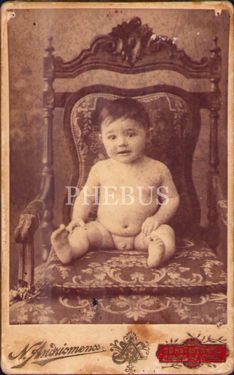 Çıplak erkek çocuğu, N.Andriomenos Fotoğrafhanesi-Constantinople, 7x11 cm