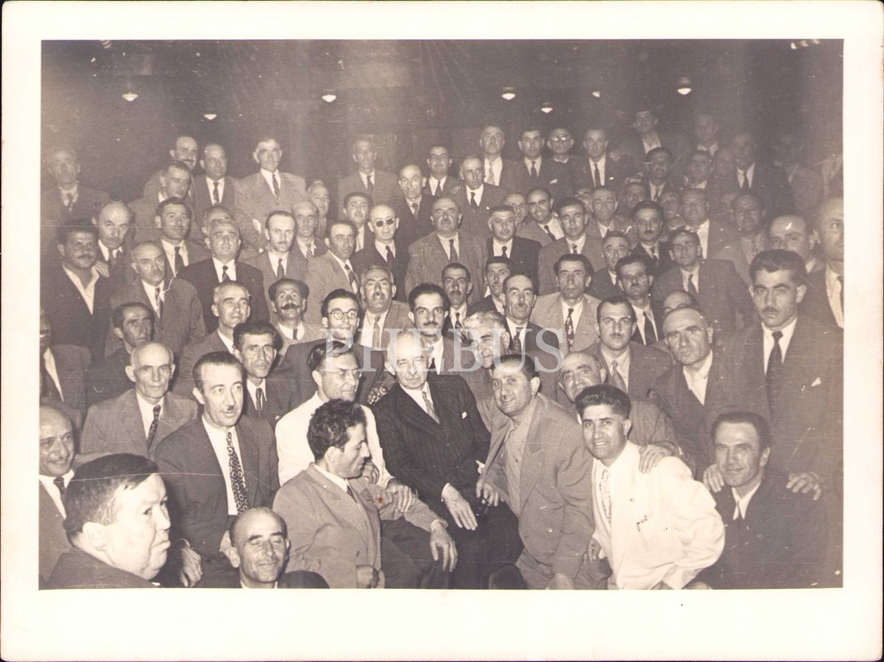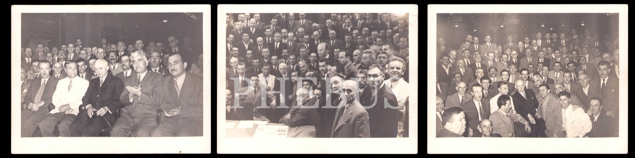 İsmet İnönü ile çektirilmiş 3 adet toplu hatıra fotoğrafı, 18x24 cm, birinin üst köşeleri kırık haliyle