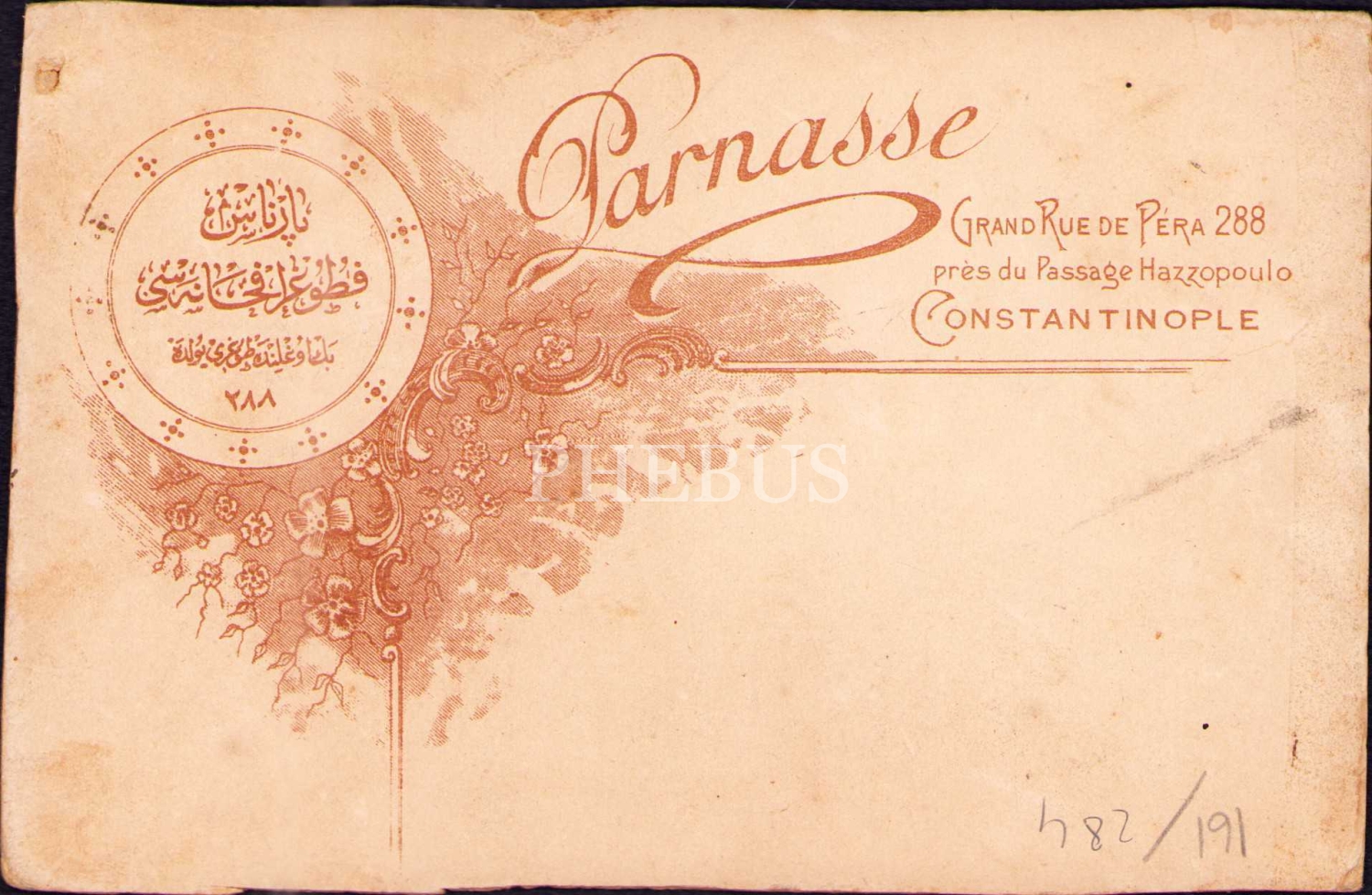Beyefendi kabin fotoğrafı, Parnasse Fotoğrafhanesi-Constantinople, 10x16 cm