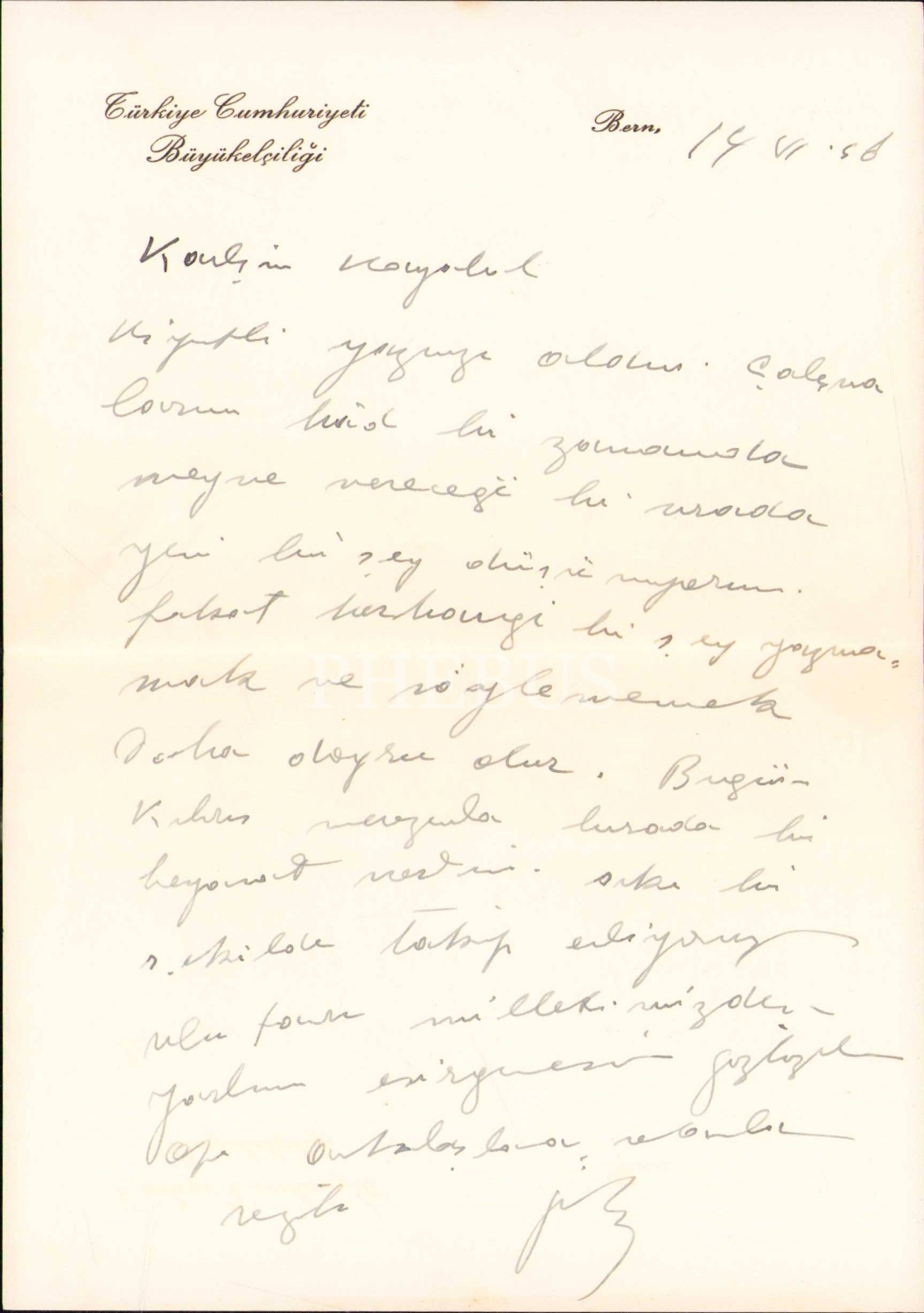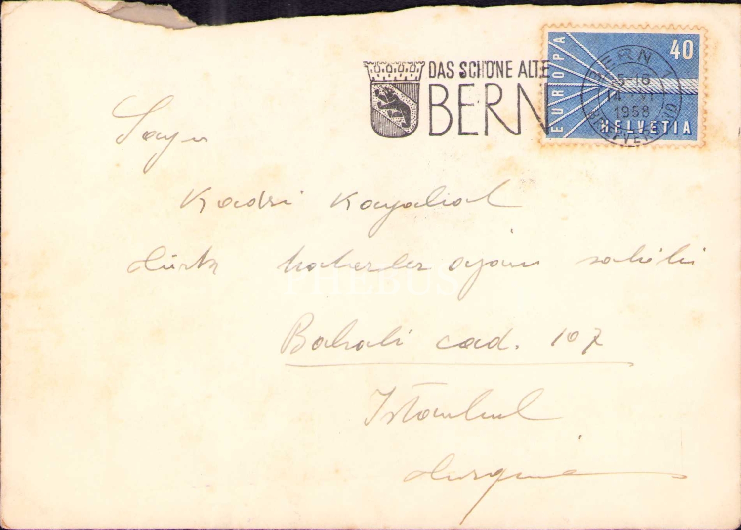 Türk Haberler Ajansı Kadri Kayabal'a hitaben Türkiye Cumhuriyeti Büyükelçiliği antetli kâğıt ile F.K.Gökay antetli zarfta gönderilen 1956 tarihli mektup ve zarfı