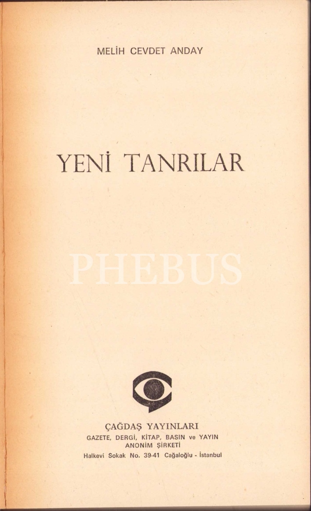 YENİ TANRILAR, Melih Cevdet Anday, Çağdaş Yayınları, İstanbul 1974, 285 s., 12x19 cm