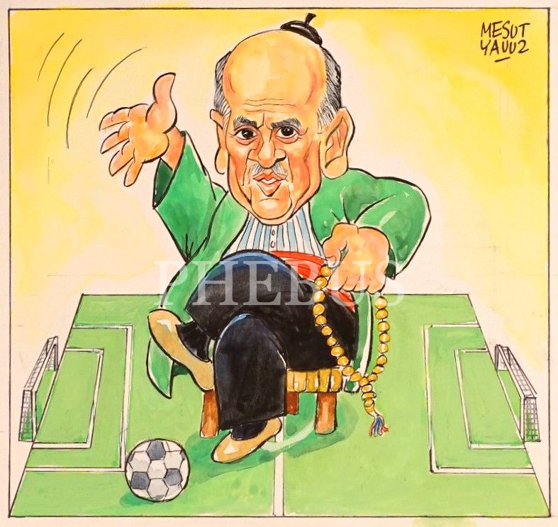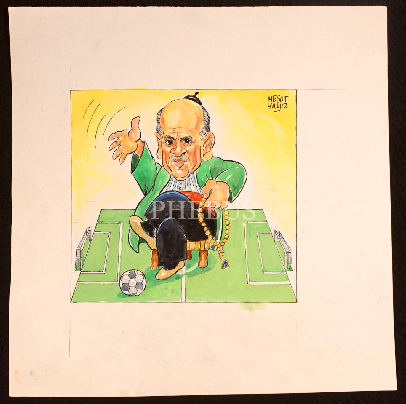 Mesut Yavuz imzalı futbol konulu karikatür, 35x35 cm