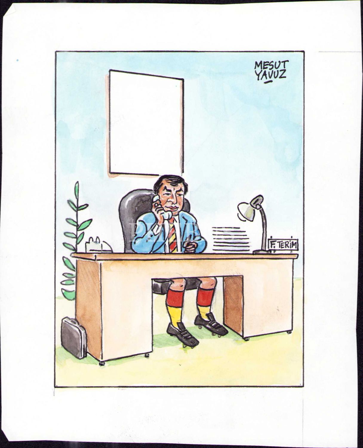 Mesut Yavuz imzalı Fatih Terim konulu karikatür, 14x17 cm