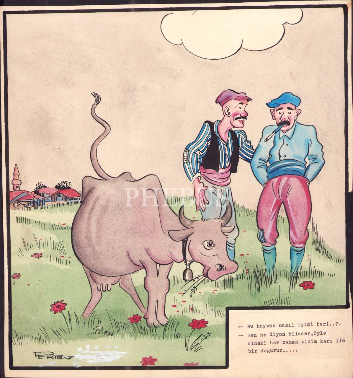 Pertev Ertün imzalı karikatür, 29x33 cm