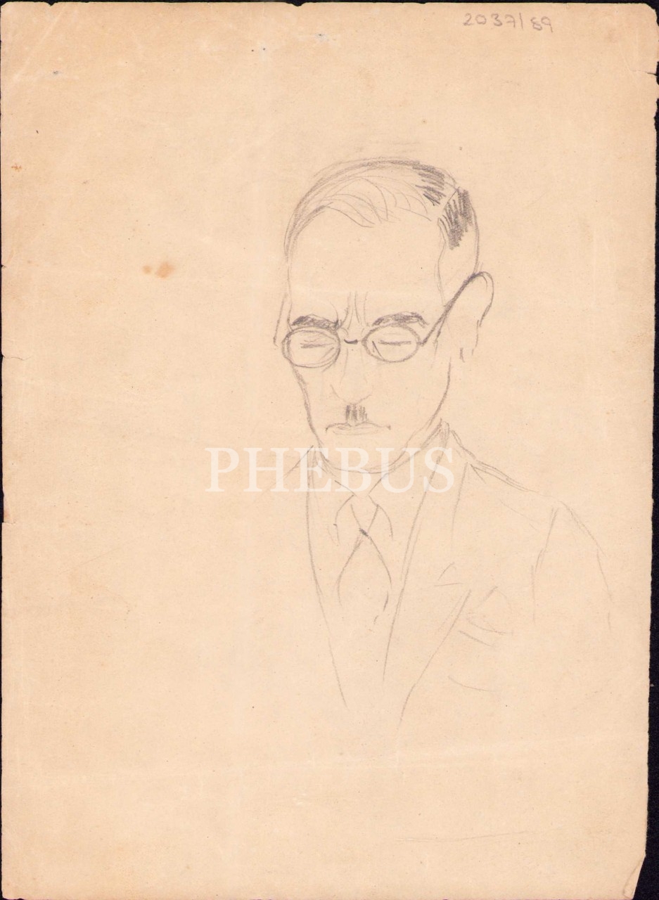 İmzalı, portre figürlü karikatür, 15x21 cm