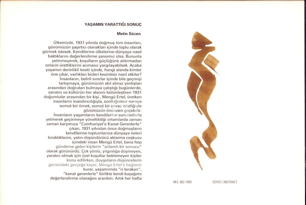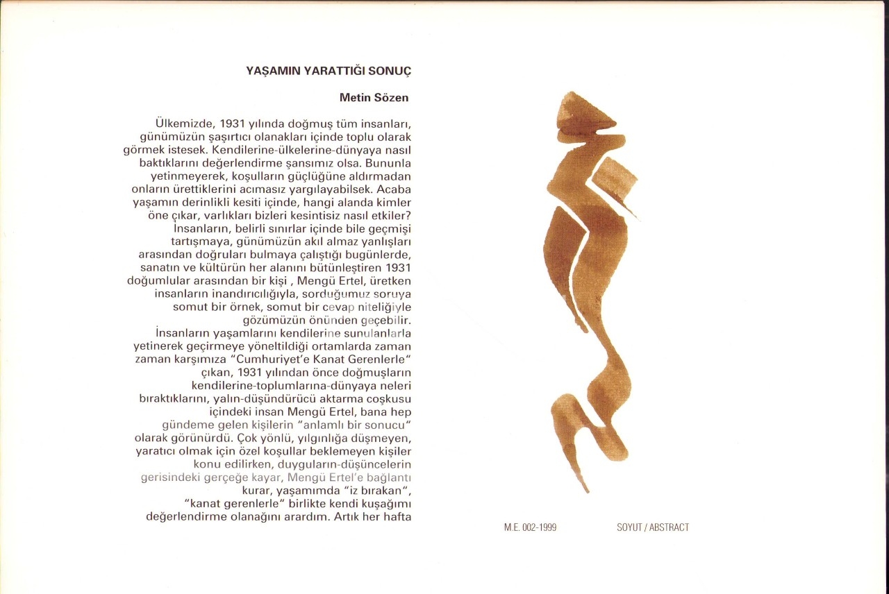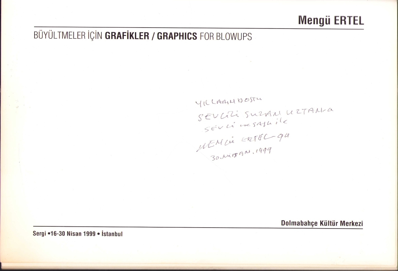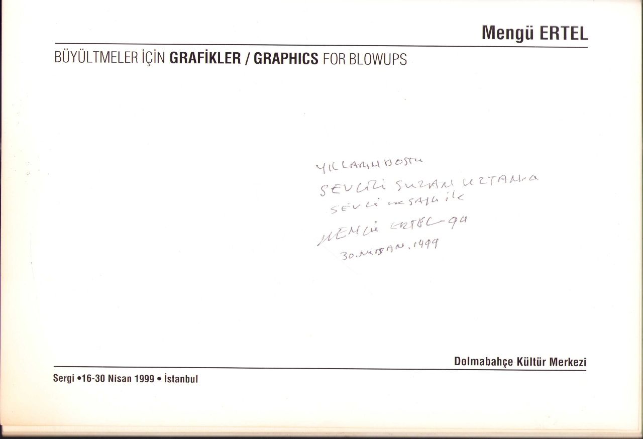 Mengü Sertel'den ithaflı ve imzalı sergi kataloğu ve Büyütmeler Sergi'sinin broşürü, 1999, 21x30 cm