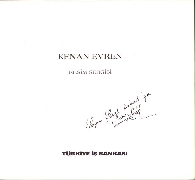 7. Cumhurbaşkanı Kenan Evren'den Ressam Şeref Bigalı'ya ithaflı ve imzalı sergi kataloğu, 1995, 20x22 cm