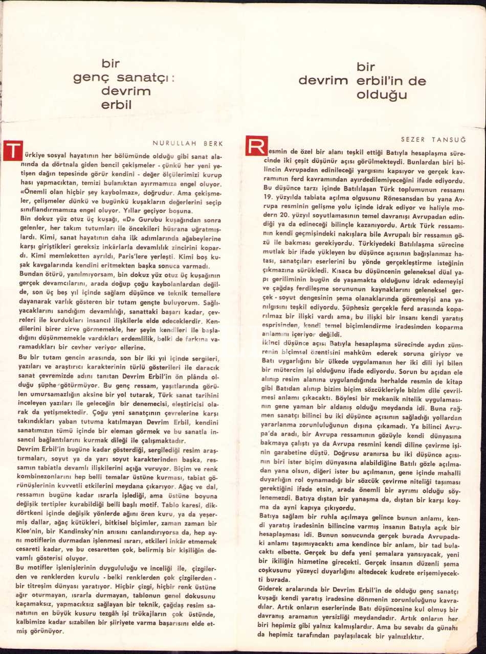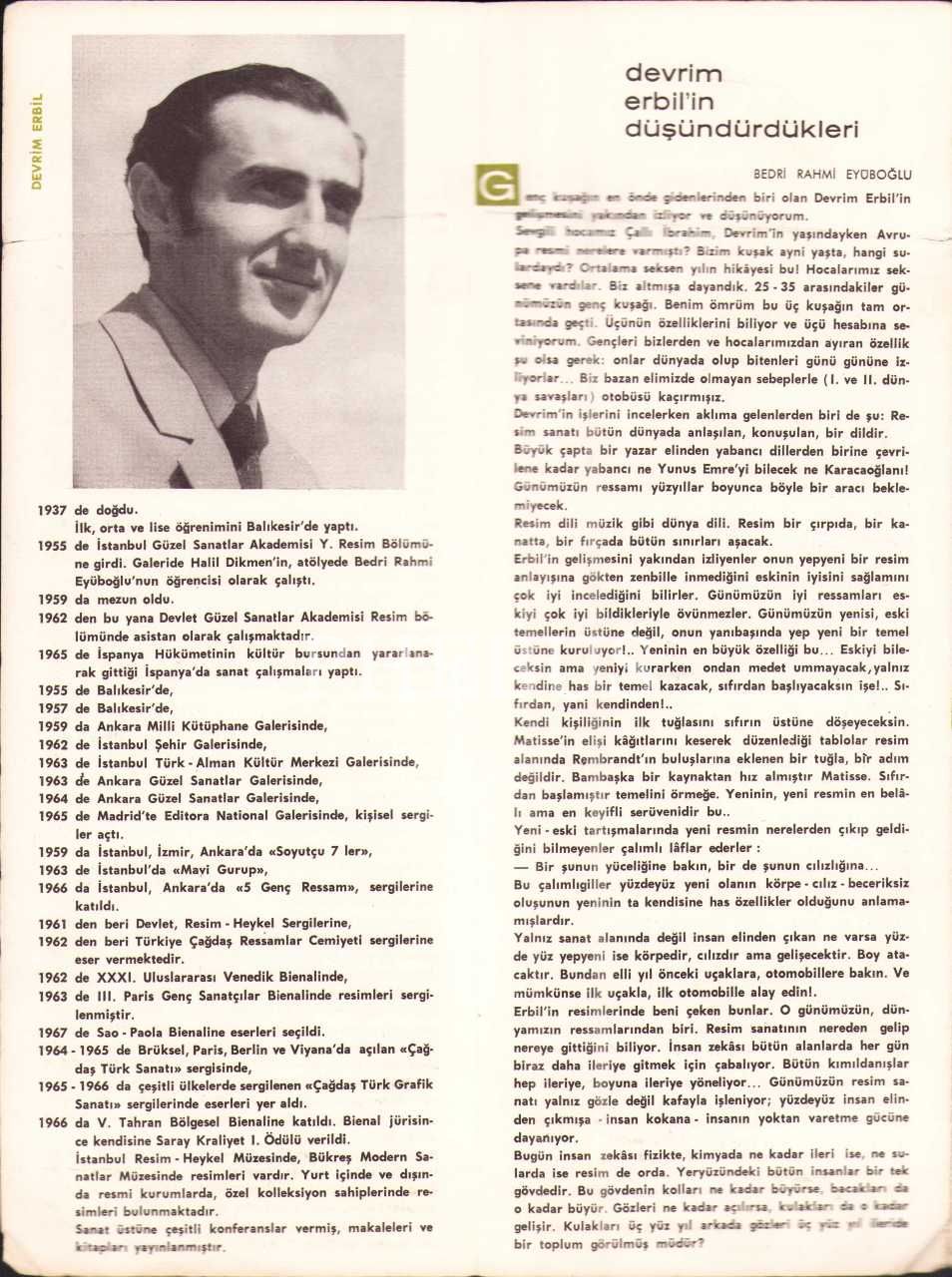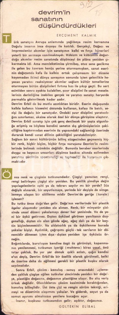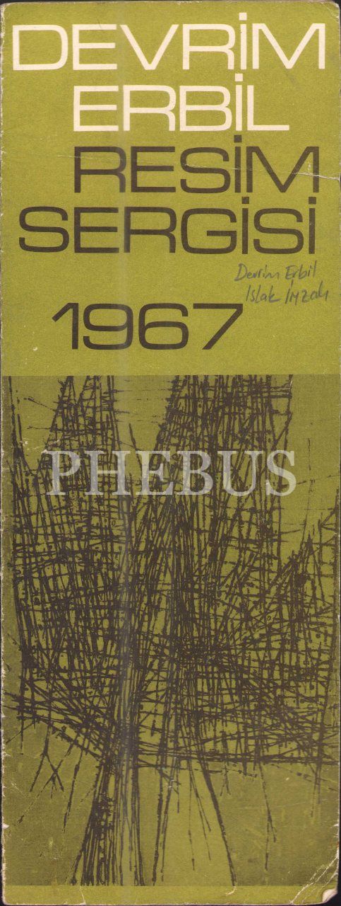 Ressam Devrim Erbil'den imzalı 1967 tarihli sergi broşürü, 12x32 cm