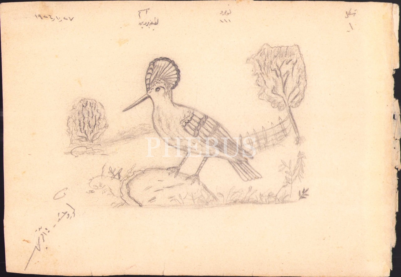 Osmanlıca Lütfiye Pervin notlu ve imzalı karakalem kuş çalışması, 1926 tarihli, 18x25 cm