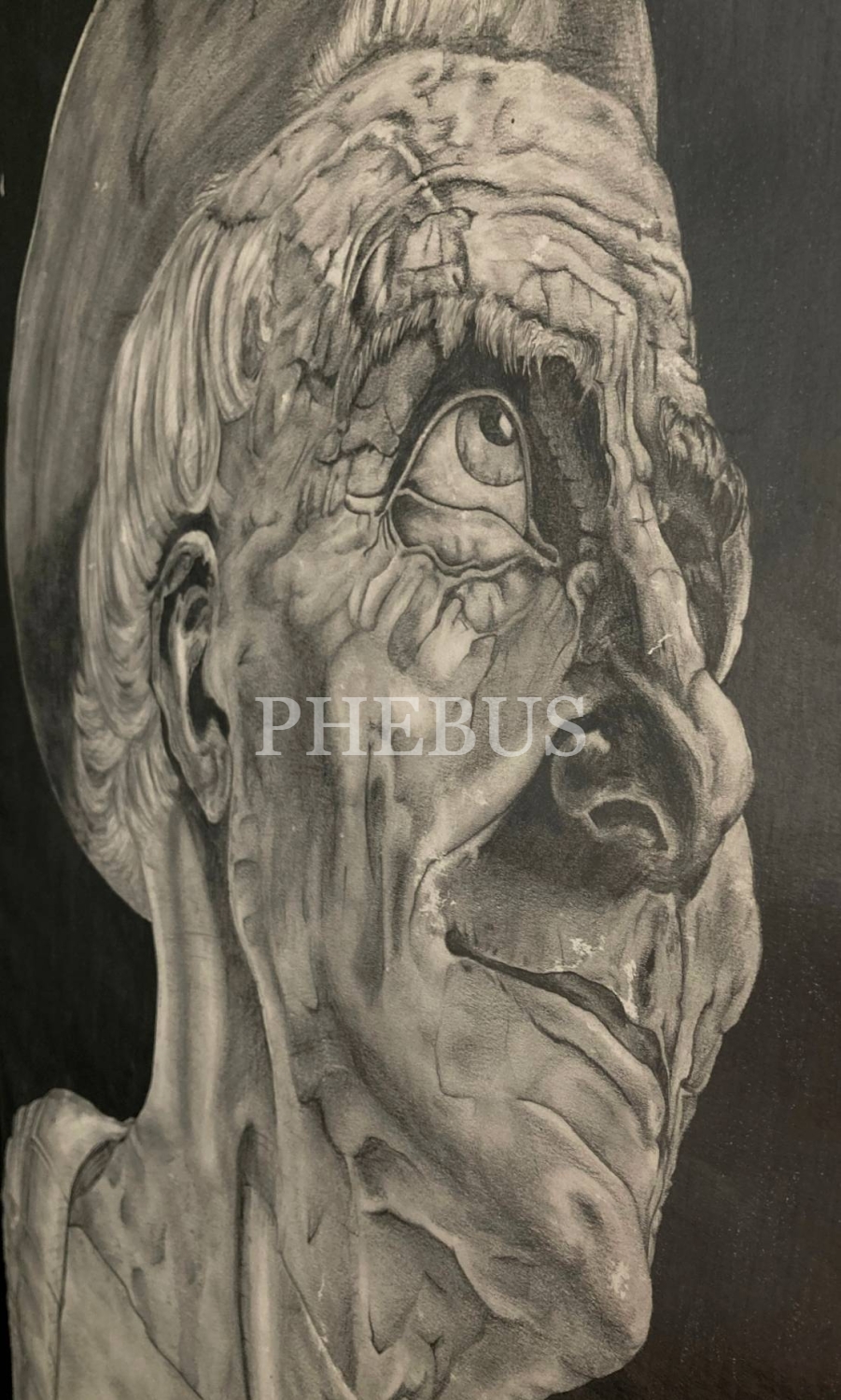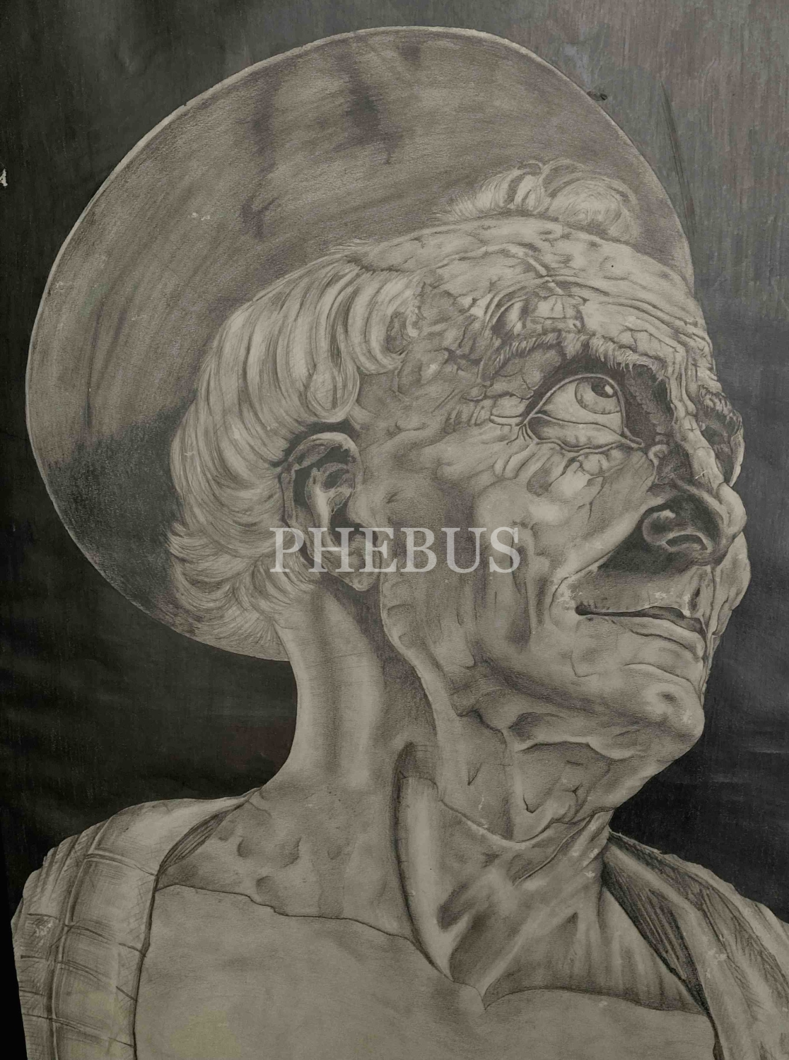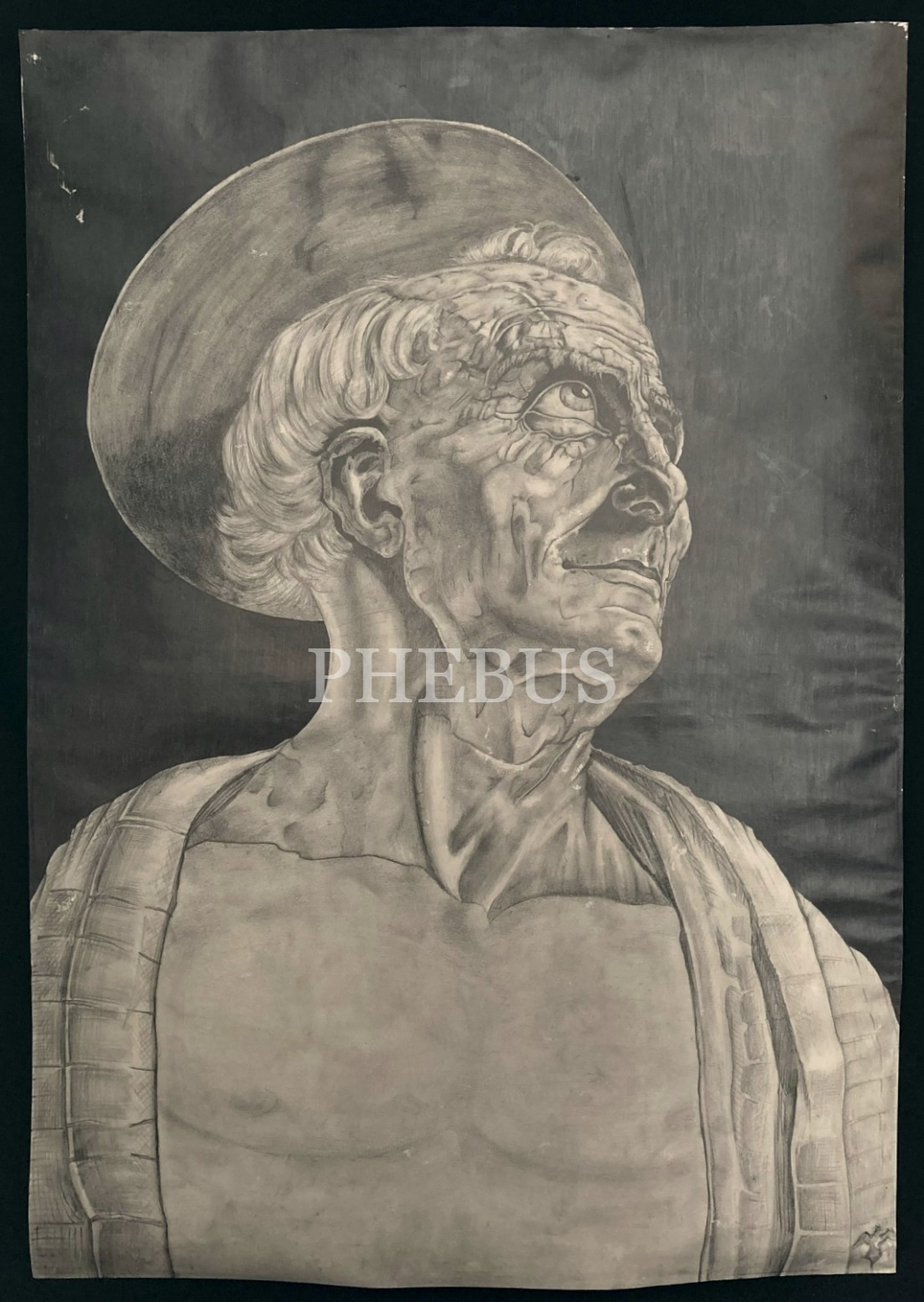 Ressam Selman Çağlayan imzalı Andrea Verocchio [1435-1488] yorumu kara kalem "San Girolamo", 1999, 70x100 cm
