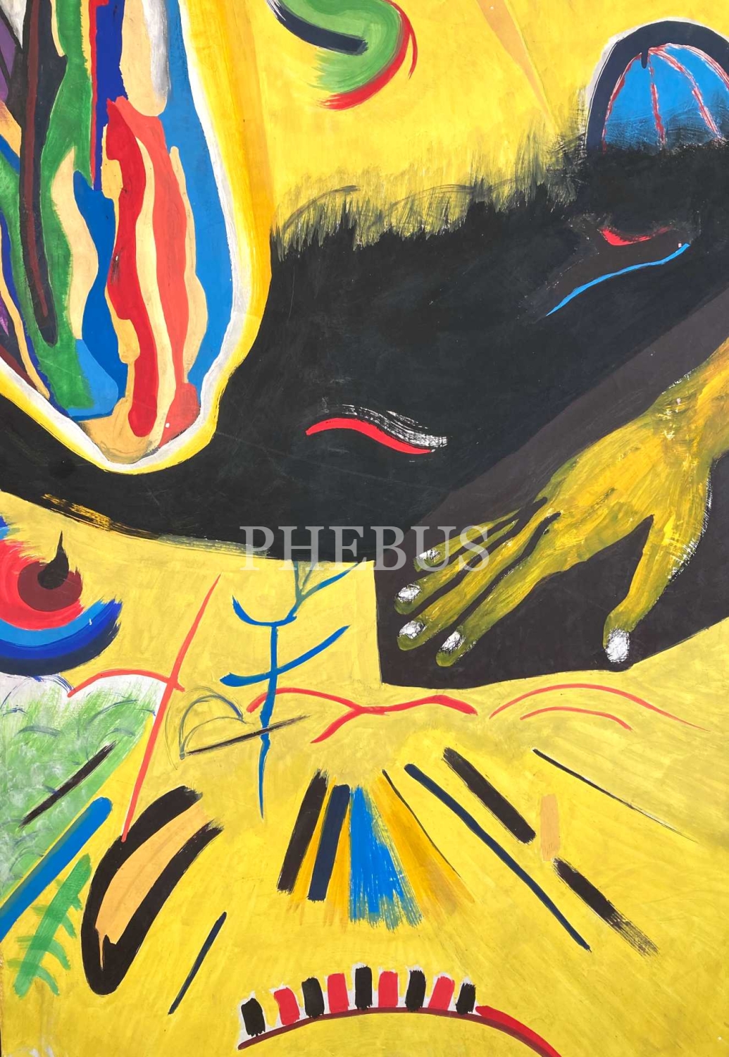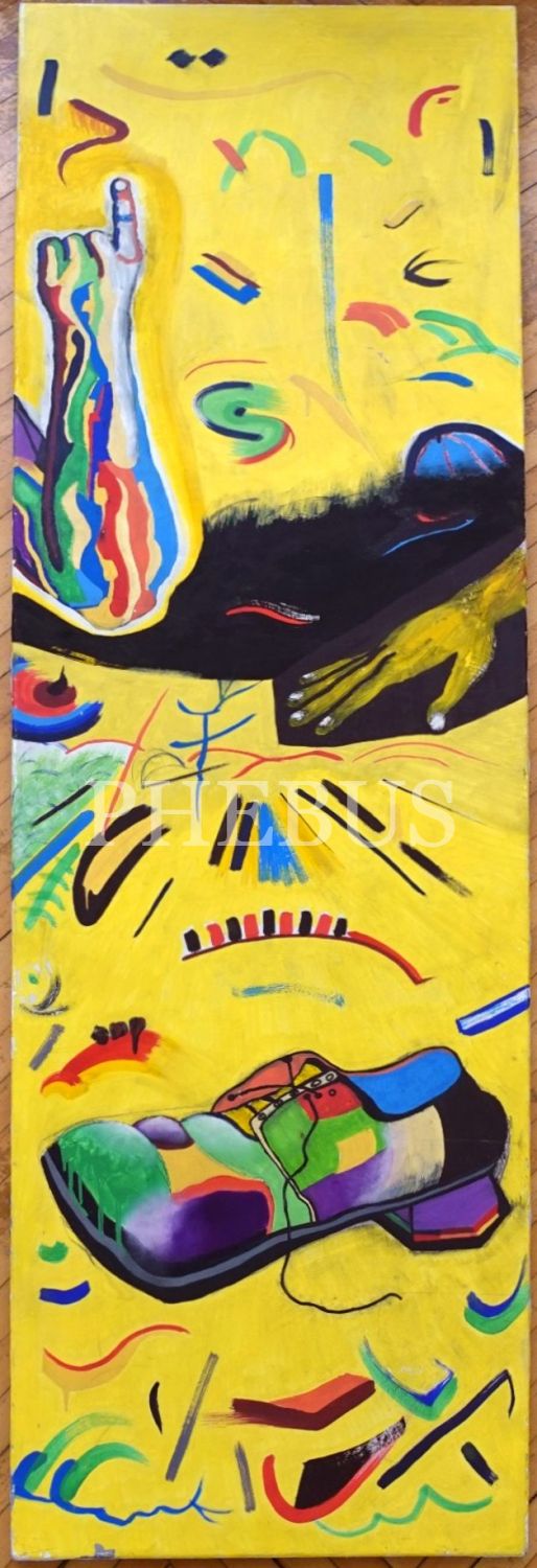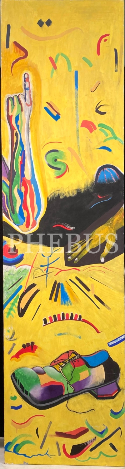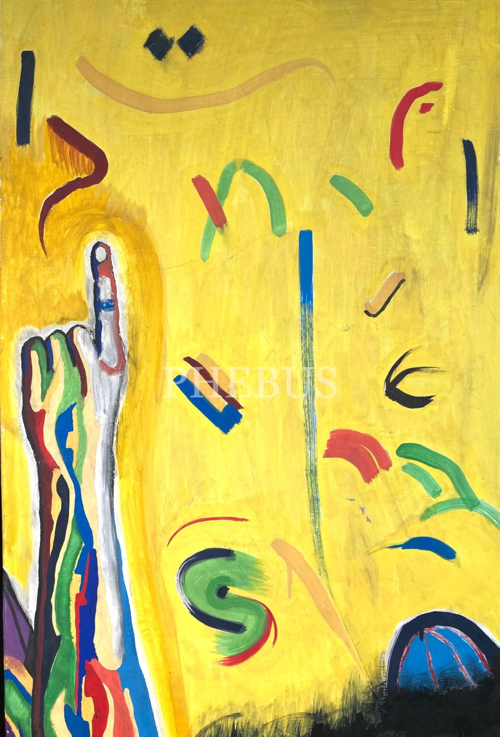 Ressam Selman Çağlayan imzalı tuval üzerine yağlı boya "Miro'ya Saygı", 2008, 55x210 cm