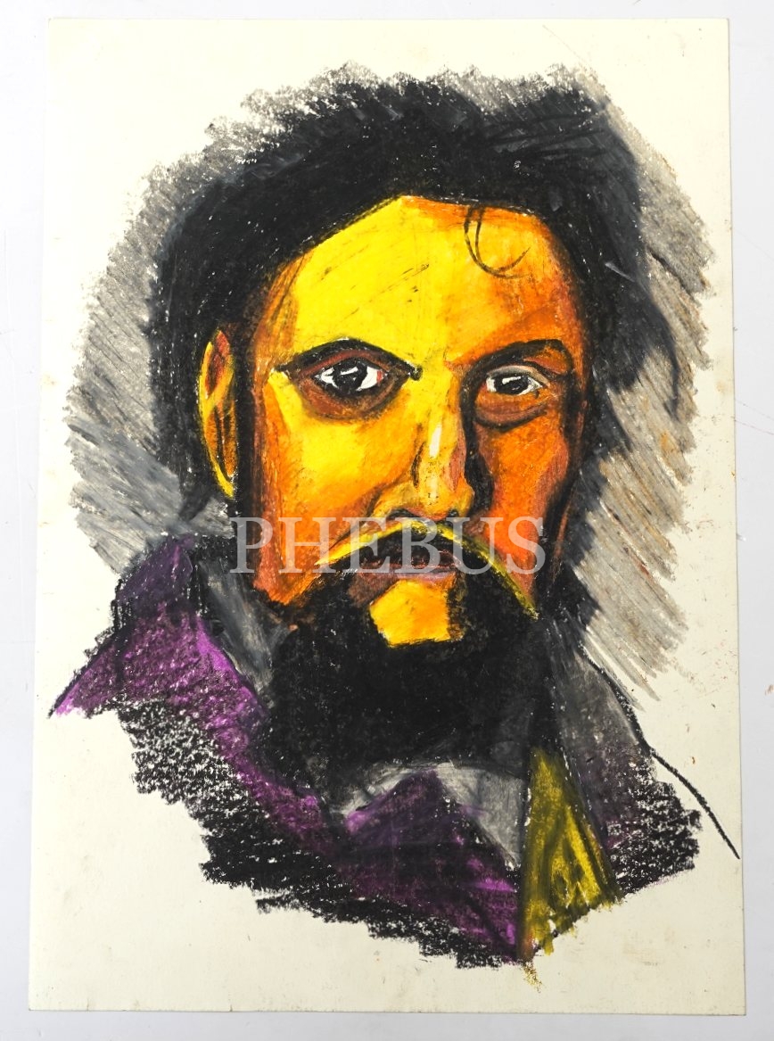 Ressam Kerem Öztürk imzalı kağıt üzerine pastel boya Modest Mussorgski portresi, 35x50 cm