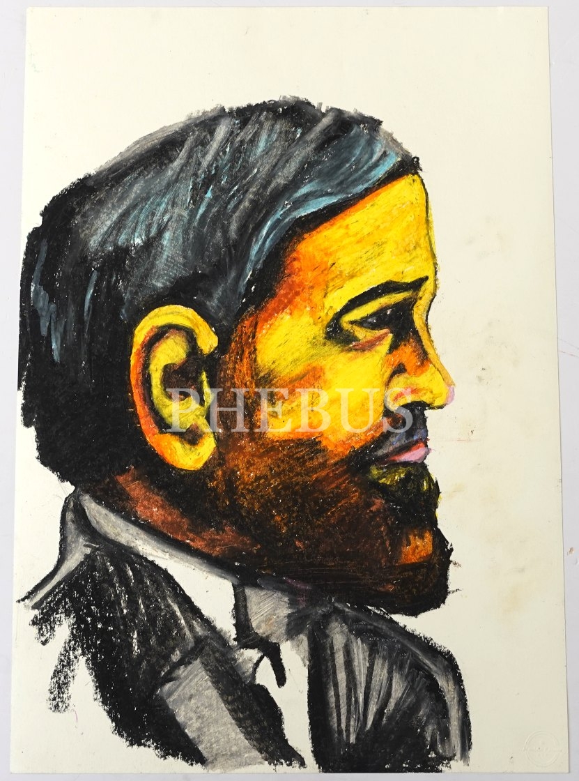 Ressam Kerem Öztürk imzalı kağıt üzerine pastel boya Claude A. Debussy portresi, 35x50 cm