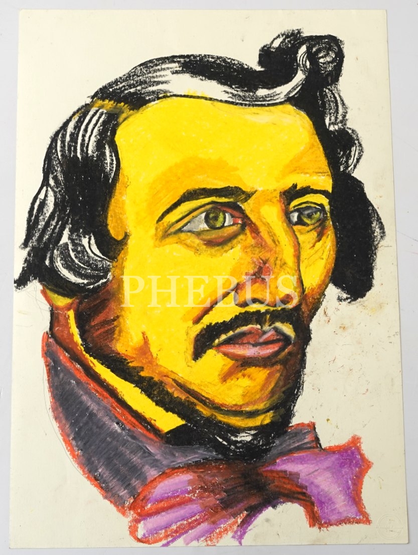 Ressam Kerem Öztürk imzalı kağıt üzerine pastel boya Gaetano Donizetti portresi, 35x50 cm