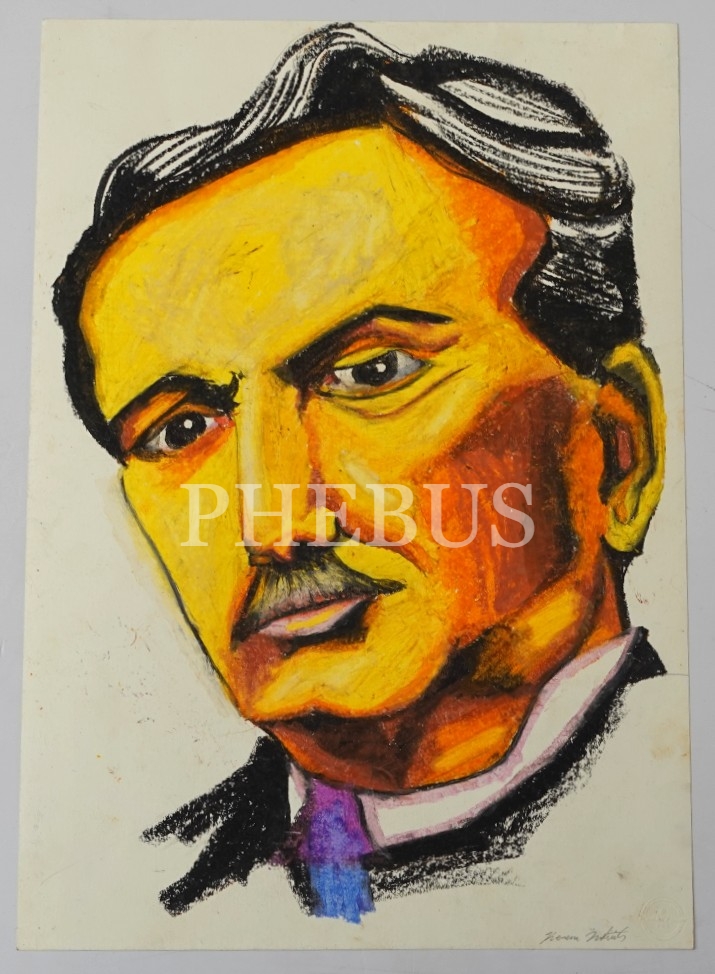 Ressam Kerem Öztürk imzalı kağıt üzerine pastel boya Giacomo Puccini portresi, 35x50 cm