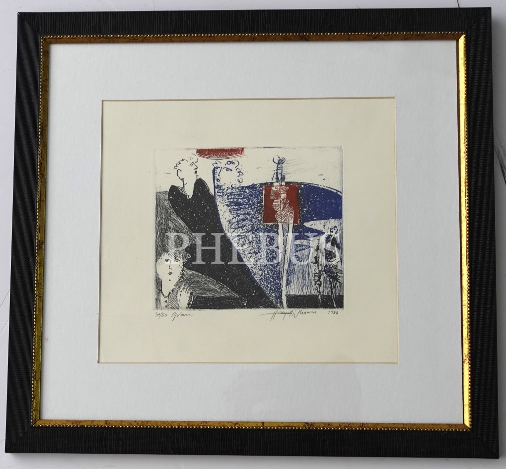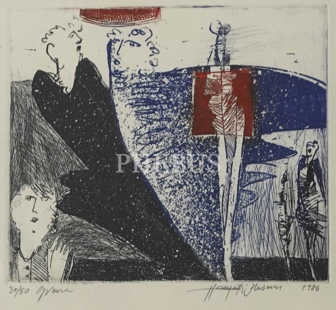 Ressam Hayati Misman İmzalı, 1986 tarihli, çerçeveli gravür resim, 38x41 cm