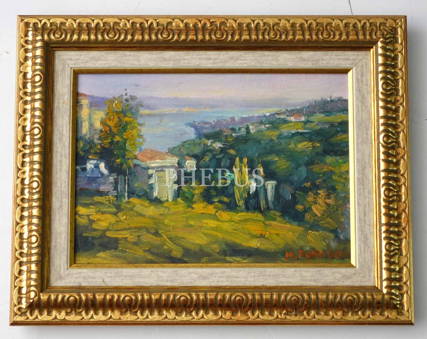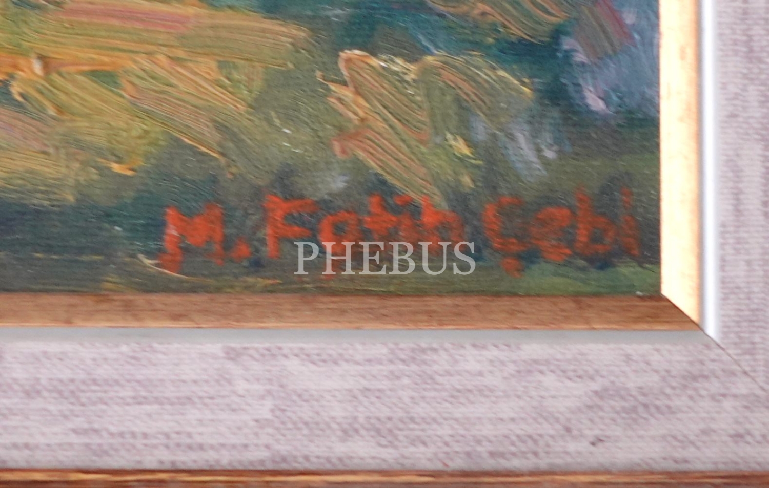 Ressam Mehmet Fatih Çebi imzalı tuval üzerine yağlı boya manzara resmi, 39x49 cm