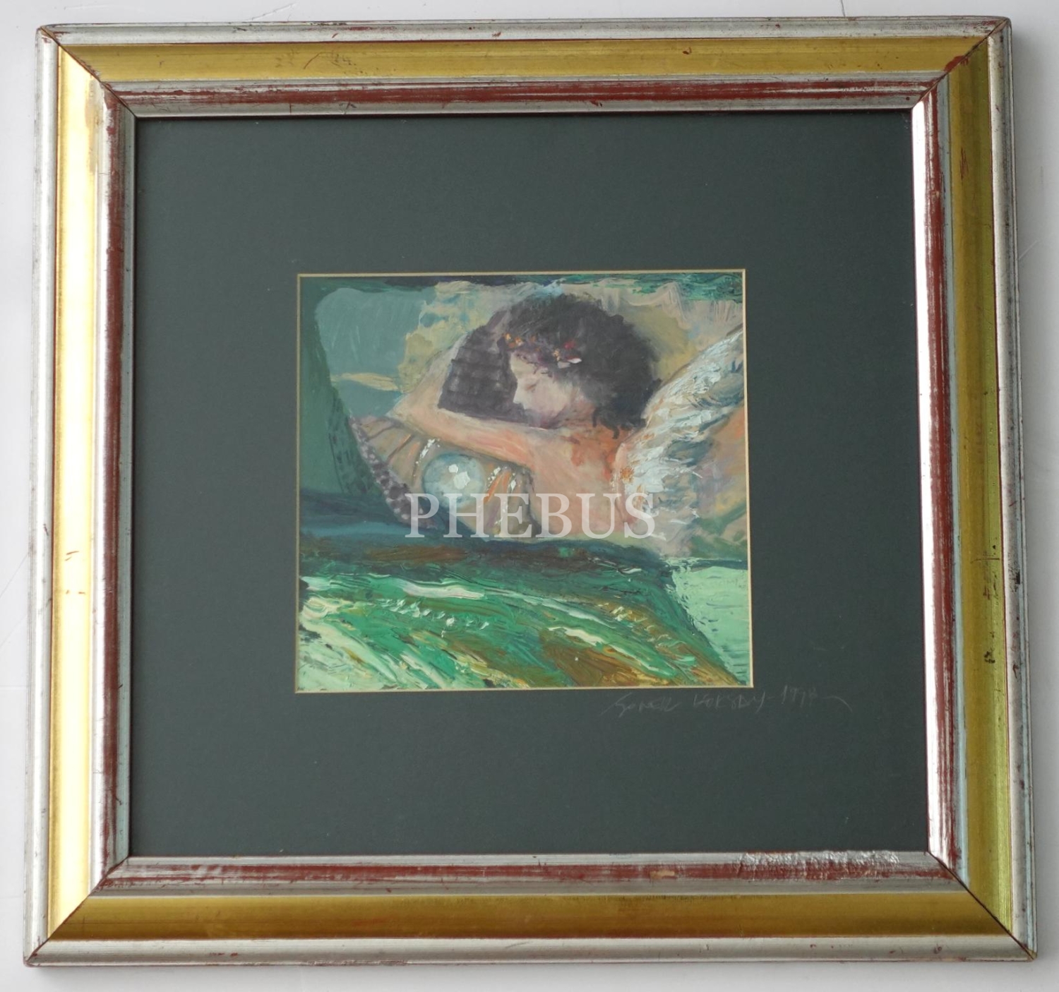 Ressam Soner Göksay imzalı kağıt üzerine yağlı boya tablo,1998 tarihli, 43x45 cm